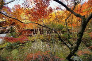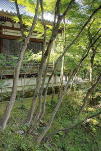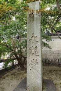 若王寺山(にゃくおうじ-ざん)の西麓に永観堂(えいかん-どう/ようかん-どう)はある。伽藍は、山腹の傾斜地を利用して建てられ、境内は1万坪(33058㎡)の広さがある。 禅林寺とも呼ばれている。正式には無量寿院禅林寺(むりょうじゅ-いん-ぜんりん-じ)という。山号は聖衆来迎山(しょうじゅ-らいごう-さん)という。 浄土宗西山禅林寺派の総本山。本尊は阿弥陀如来(見返り阿弥陀如来)。 法然上人(圓光大師)二十五霊場縁故本山。西山国師(証空)遺跡霊場第8番札所。六阿弥陀巡拝(洛陽六阿弥陀めぐり)第2番。文殊菩薩は知恵の寺めぐり(京都文殊霊場)の第2番。 御朱印(5種類)が授けられる。「ミシュラン・グリーンガイド・ジャポン1つ星観光地」(改訂第4版)に選ばれている。 ◆歴史年表 平安時代、この地には、「東山進士」といわれた藤原関雄(ふじわら- の-せきお)の東山山荘があった。洛東の名勝地として知られていた。(『文徳実録』『古今集』) 853年、10月、空海弟子の河内観心寺・真紹(しんじょう)が、第54代・仁明天皇の聖恩に報いるために藤原関雄の山荘を譲り受ける。観心寺の毘盧遮那仏(るしゃなぶつ、大日如来)、四方四仏を遷して安置した。当初は真言宗密教の道場になる。(『三代実録』) 855年、真紹は第54代・仁明天皇の聖恩報謝ために一堂を建立し、五仏を安置したともいう。 863年、第56代・清和天皇より「禅林寺」の寺名(勅額)を贈られ、官寺に準じる特典を与えられる定額寺になる。 868年、真紹は、「禅林寺式十五条」を定めた。弟子・宗叡(そうえい)に譲ることを定める。 877年、旧3月、清和上皇は2世・宗叡に帰依し、御願寺を建てた。仏殿が建立される。近くに請願寺・円覚寺が境内に建立され、兼帯地になる。狭隘のため第57代・陽成天皇の勅により、山城国愛宕郡公田4町を施入する。(『三代実録』) 880年、清和上皇は宗叡を戒師として出家、落飾し円覚寺で亡くなる。 881年、陽成天皇の勅により、寺域が拡大する。 993年、焼失している。(『禅林寺誌』) 1016年、般若寺の施主・小野宮実資は、大仏(大日如来)を禅林寺に遷した。 1042年、聖命は愛宕郡下粟田里、下山田里、山根里を施入する。以来、浄土宗の念仏道場になる。 1072年、永観は東大寺別所光明山より移り、禅林寺に東南院を創建する。(『本朝高僧伝』) 1073年、第71代・後三条天皇が没し、遺骨が安置される。中陰の尊忌を営む。宝塔が建立された。 承暦年間(1077-1081)/1072年とも、深覚弟子で7世・永観により浄土念仏道場とされた。永観は中興の祖になる。阿弥陀如来を本尊にした。その後、永観堂の呼称が一般的になる。 1082年、永観は念仏行道の時、壇上の弥陀、みかえりの相(本尊・見返り阿弥陀)を感得したという。 1097年、永観は薬王院を建て施療所を置く。 浄土宗の開祖・法然(1133-1212)が、静遍により11世に迎えられた。静遍自らは12世になる。浄土宗に改める。 平安時代末期-鎌倉時代、境内は、北は鹿ヶ谷、鎮守社・若王子神社、西は鴨川、南は南禅寺まで及んだ。塔頭が建ち並び、北に北禅林寺、南に南禅林寺があった。 鎌倉時代、1190年、源頼朝は静遍に帰依し、十六善神、大般若経を寄進した。 1198年、源頼朝が参詣し、武運長久・天下泰平のために大般若経を寄進する。供米360石を寄せ、以後、慣例になる。 鎌倉時代中期、浄土宗西山派開祖・證空(しょうくう、1177-1247)が13世になる。 1221年、静遍は、後高倉院の院宣により住した。 1235年頃、阿弥陀堂が建立される。 1253年、證空弟子の17世・浄音が禅林寺に入る。以来、浄土宗一派の本山になった。 1264年より、第901代・亀山天皇の離宮「禅林寺殿」の南禅寺への発展、造営に伴い、境内南部分が割譲される。以後、衰微する。 南北朝時代、嘉暦年間(1326-1329)、荒廃する。20世・覚願、21世・覚生、22世・観意らが復興を続ける。 1339年、足利尊氏は出雲国淀新庄の地頭職を寄進する。 室町時代、聖衆来迎院を中心として観経曼荼羅の信仰が集まる。 応永年間(1394-1428)、大内義弘がこの地を管理した。第100代・後小松天皇の母・通陽門院厳子は堂塔を修理する。寺領1両所を施入する。(『禅林寺誌』) 1461年、第102代・後花園天皇は二重楼門を建立する。 1467年、応仁・文明の乱(1467-1477)で、東岩倉の合戦により大半の伽藍を焼失した。以後、衰微する。 1472年-1497年、復興される。第103代・後土御門天皇により、1497年、御影堂(祖師堂)、第104代・後柏原天皇により釈迦堂(方丈)、書院、客殿が建立された。筋塀が築かれる。 永正年間(1504-1521)、方丈(釈迦堂)、臥龍廊が建てられた。 1504年、臥龍廊が建てられたともいう。 1528年、南禅寺と寺領をめぐり争う。 1536年、豊臣秀頼は当麻曼荼羅を修復し寄進する。 1572年、門流僧の香衣出世の執奏(取り次いで奏上する)を勅許された。 安土・桃山時代、1573年、豊臣秀吉は鹿ヶ谷村に43石の寺領を与える。阿弥陀堂が建立された。 1600年、御影堂が再建されたともいう。(『禅林寺正選歴代記』) 江戸時代、1682年、旧3月、妙法院門跡堯恕親王が桜見物してい