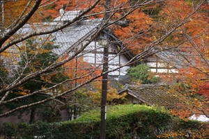 音無の滝に向かう急峻な坂道の途中、呂川に架かる羅漢橋を渡った石垣上に、蓮成院(れんじょう-いん)はある。来迎院の塔頭の一つになる。 天台宗、本尊は阿弥陀如来像を安置している。 ◆歴史年表 創建、変遷の詳細は不明。 室町時代、応永年間(1394-1428)、「北ノ坊」と呼ばれた。当初は来迎院内、また、三千院内にあったともいう。 江戸時代、本堂(来迎院)の僧房の一つとして、呂川沿いに蓮成院があった。江戸時代に、現在地に移転したともいう。 1720年、寺号は「蓮成院」に改められる。 1726年、焼失した。 近代、1926年、現在地に移転したともいう。 ◆良忍 平安時代後期の融通念仏宗開祖・良忍(りょうにん、1073-1132)。男性。俗姓は秦、若い頃は良仁、号は光乗(静)房、諡号は聖応(しょうおう)大師、本願上人。尾張国(愛知県)の生まれ。富田荘領主の子。1083年、比叡山に入る。比叡山の東塔檀那院実報房辺に住した。堂僧になり、実兄・良賀に師事し出家する。無動寺明王堂に1000日間はだし参りを行う。不断念仏を修め、良仁の名を与えられる。園城寺・禅仁から戒法、観勢から円頓戒脈を相承する。仁和寺・永意から秘密灌頂を受けた。山門派(延暦寺)と寺門派(三井寺・園城寺)との対立を嫌い、山を下りる。1094年、大原に隠棲し、名も良忍に改める。大原・勝林院の永縁らに従い、声明梵唄を学ぶ。その後、常行三昧堂から念仏と読経(声明)を切り離して独立させ、天台声明を統一し大原声明を完成させた。1109年、大原に来迎院・浄蓮華院の2院を建てる。1117年、阿弥陀仏の霊告を感得し、自他融通の念仏を創始した。1124年、宮中で融通念仏会をいとなむ。1125年、鞍馬寺に詣で通夜をし、本尊・毘沙門天が現れて融通念仏を守護すると告げたという。1127年、鳥羽上皇(第74代)の勅願により、河内平野に修楽寺の別院(大念仏寺の前身、日本初の念仏道場)を開く。1132年、来迎院で没したという。60歳。 融通念仏宗の開祖、円仁の請来した声明を習得・大成し、天台大原魚山声明中興の祖になる。融通念仏は阿弥陀仏の夢告により、「一人の念仏が万人の念仏に通じる」とした。念仏唱える者は自分だけではなく万人のためにも唱え、万人が一人のために唱えることで念仏の功徳が高まると説いた。1773年、聖応大師の号を追諡された。 ◆守脩親王 江戸時代後期-近代の皇族・守脩親王(もりおさ-しんのう、1819-1881)。男性。幼称は万代宮、法名は覚諄、昌仁。父・伏見宮貞敬親王の第10王子、母・不詳。伏見宮邦家親王の弟。1833年、親王宣下を受け、守脩と命名された。円満院に入り、出家し覚諄入道親王と称した。1856年、二品に叙せられる。1859年、円融院に入る。梶井門跡になり、昌仁入道親王に改めた。天台座主も務めた。1868年以降、還俗し、梶井宮守脩親王を名乗る。1869年、上野太守に任じられる。1870年、宮号を梨本宮に改称した。63歳。 梨本宮(なしもとのみや)初代。継嗣が無く、山階宮晃親王の王子・甥の菊麿王を養子にした。 墓は泉涌寺内(東山区)にある。 ◆仏像 ◈本尊は「阿弥陀如来像」になる。室町時代作という。 ◈厨子内に平安時代後期(12世紀)作の「毘沙門天像」になる。現代、2021年の調査で判明した。平安時代の冠を被る。室町時代作のその妻・「吉祥天像」、その子・「善膩師(ぜんにし)童子像」が三尊形式で安置されている。 ◆建築 ◈石段上に「薬師門」がある。門は通りに面しておらず、石段を上り左に折れ、さらに石段を上がった地点に西面して開く。 ◈「庫裡」は、玄関の東側(左手)にある。 ◈「客殿」は、玄関の西側(右手)になる。江戸時代後期-近代の昌仁法親王(守脩親王)(1819-1881)の仮御殿として、当初は三千院内に建立された。近代以前(江戸時代)に現在地に移築されたとも、近代、1926年に宸殿再建に伴い移築されたともいう。 東西方向に2室あり、西の「上の間」(10畳)は昌仁法親王が用い、東の「下の間」(10畳)は来迎院長老が用いたという。2室の境に宮家の欄間が見られ、釘隠しには菊花紋が刻まれている。 南側は庭園に面し、畳敷の縁(幅180㎝)がある。切妻造。 客殿の南西角は、昌仁法親王の持仏堂であり、仏間になっている。 ◆文化財 ◈客殿上の間に、近現代の日本画家・菊池契月(きくち-けいげつ、1879-1955)筆の障壁画「飛天図」がある。 ◈客殿下ノ間に、近代の日本画家・木島櫻谷(このしま-おうこく、1877-1938)の色紙貼交襖があり色紙を貼り交ぜる。 櫻谷筆の屏風には、水墨画により雄雌の2頭の鹿が描かれている。 ◈近現代の日本画家・西山翠嶂(にしやま-すいしょう、1879-1958)筆の兎を描いた作品がある。 ◈近代の日本画家・川北霞峰(かわきた-かほう、1875-1940)筆の竹林を描いた襖絵がある。 ◈日本画家・鈴木松年(すずき-しょうねん、1848-1918)筆の屏風がある。 ◈近代の日本画家・川村曼舟(かわむら-まんしゅう、1880-1942)筆の衝立がある。 ◆庭園 客殿南側に庭園がある。山の傾斜を利用し築山にしており、立体的な構成になっている。視点場は西側の客殿・東側の庫裡の2