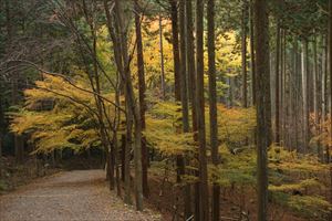 音無滝(おとなしのたき)は、大原の小野山の山腹にある。律川の上流、来迎院の東北300mに流れ落ちている。 ◆歴史年表 平安時代後期、良忍(りょうにん、1073-1132)により、滝は音無滝と名付けられたという。 僧侶・歌人・西行(1118-1190)が歌に詠んだ。 ◆良忍 平安時代後期の融通念仏宗開祖・良忍(りょうにん、1073-1132)。俗姓は秦、若い頃は良仁、号は光乗(静)房、諡号は聖応(しょうおう)大師、本願上人。尾張国(愛知県)の生まれ。富田荘領主の子。1083年、比叡山に入る。比叡山の東塔檀那院実報房辺に住した。堂僧になり、良賀に師事し出家する。無動寺明王堂に1000日間はだし参りを行う。不断念仏を修め、良仁の名を与えられる。園城寺・禅仁から戒法、観勢から円頓戒脈を相承する。仁和寺・永意から秘密灌頂を受けた。山門派(延暦寺)と寺門派(三井寺・園城寺)との対立を嫌い、山を下りる。1094年、大原に隠棲し、名も良忍に改める。大原・勝林院の永縁らに従い、声明梵唄を学ぶ。その後、常行三昧堂から念仏と読経(声明)を切り離して独立させ、天台声明を統一し大原声明を完成させた。1109年、大原に来迎院・浄蓮華院の2院を建てる。1117年、阿弥陀仏の霊告を感得し、自他融通の念仏を創始した。1124年、宮中で融通念仏会をいとなむ。1125年、鞍馬寺に詣で通夜をし、本尊・毘沙門天が現れて融通念仏を守護すると告げたという。1127年、鳥羽上皇(第74代)の勅願により、河内平野に修楽寺の別院(大念仏寺の前身、日本初の念仏道場)を開く。1132年、来迎院で没したという。60歳。 融通念仏宗の開祖、円仁の請来した声明を習得・大成し、天台大原魚山声明中興の祖になる。融通念仏は阿弥陀仏の夢告により、「一人の念仏が万人の念仏に通じる」とした。念仏唱える者は自分だけではなく万人のためにも唱え、万人が一人のために唱えることで念仏の功徳が高まると説いた。1773年、聖応大師の号を追諡された。 ◆西行 平安時代後期-鎌倉時代前期の真言宗の僧・西行(さいぎょう、1118-1190)。佐藤義清(のりきよ、憲清、則清、範清)、別号は大宝房、大本房、大法房、法名は円位。秀郷流武家藤原氏の出自。父・検非違使・左衛門尉佐藤康清、母・監物(けんもつ)源清経の娘。16歳頃、徳大寺家に仕え、1135年、兵衛尉(左兵衛府の第三等官)に任ぜられる。1137年、鳥羽院(第74代)の下北面(げほくめん)の武士になる。1140年、妻子を捨てて出家し、円位、後に西行とも称した。鞍馬山、1141年、東山の双林寺、長楽寺などに草庵を結んだ。1144年頃/1147年、奥羽、1149年頃、高野山に庵を結ぶ。1156年、鳥羽法皇の葬送に参り、保元の乱に敗れ仁和寺に籠った崇徳上皇に参じた。1168年/1167年/仁安年間(1166-1169)、讃岐の崇徳院の墓陵参拝、弘法大師の遺跡巡礼を目的とし、中四国を巡る。1172年、平清盛主催の千僧供養に参加した。その後、高野山で聖生活に入り上人になる。1177年、高野山の蓮華乗院の移築に関わる。治承年間(1177-1181)、伊勢国二見浦に移る。神祇信仰を深め、内宮祠官荒木田氏と交わった。1186年、俊乗房重源に委嘱され、東大寺再建のため平泉での砂金勧進を奥州藤原氏に行う。この2度目の奥州、伊勢国の漂泊で多くの歌を詠む。途中、鎌倉で源頼朝に初対面する。1189年、河内国・弘川寺(大阪府河南町)に庵を結ぶ。弘川寺で亡くなる。73歳。墓は弘川寺にある。 和歌に秀でた。平清盛、平忠盛、平時忠、待賢門院、崇徳院、徳大寺実能らと交わる。大原三寂(寂念、寂然[藤原為業])、寂超)、藤原俊成、待賢門院堀河、上西門院兵衛と親しくした。家集に『山家集』、勅撰集の『千載集』、『新古今和歌集』には94首が入集。恋歌が多く鳥羽上皇皇后との禁断の恋に破れたともいう。桜を愛で多くの歌を残した。故実に通じ、武芸、蹴鞠も秀でた。 ◆音無滝 音無滝は、小野山から流れ下る白糸の滝であり、小野の大滝、一ノ滝ともいう。上流には二ノ滝、三ノ滝がある。 音無滝は、良忍(りょうにん、1073-1132)により名付けられたという。来迎院で声明をあげた際に、梵唄の声に滝の音が同調し、滝の音が消えたという。また、滝音に声明が乱されるのを嫌い、呪文により消したともいう。 ◆呂川・律川 来迎院の南に呂川(りょせん)、北に律川(りつせん)が流れている。二線を合わせて「呂律川」という。水源は小野山にあり、三千院境内の南北を挟んで流れ大原川に合流している。 「呂律(ろれつ)」、「呂律が回らない」の「呂律」の語源とされている。この呂律は、声明の音律に因んでいる。雅楽の「呂律(りょりつ)」では、「言葉の調子」を意味し、「呂(りょ)」と「律(りつ)」の音階が合わないことを「呂律が回らない」と表現した。後に、「言葉がはっきりしないこと」も意味した。 雅楽の「呂の音律(呂旋法)」は、音階の「宮」、「商」、「角」、「徴(ち)」、「羽(う)」の5声に「変徴」、「変宮」の2音を加えた7声になる。相対的音程関係はソ・ラ・シ・ド・レ・ミ・ファの形になる。 律の音律(律旋法)は、音階の「宮」、