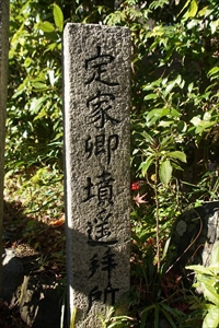 ![]() 「中院入道 前大納言 藤原為家 卿 墓」の石標 ![]() ![]() 藤原定家の墓 ![]() 藤原定家の墓 ![]() 「定家卿 墳 遥拝所」の石標 ![]() |