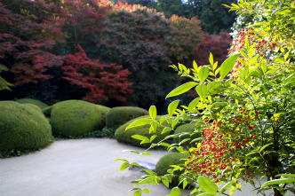 白川通より坂を上がる途中に詩仙堂 (しせん-どう)がある。江戸時代の文人・石川丈山(いしかわ-じょうざん)が、没するまでの31年間をこの地で隠棲した。建物と庭園は国の史跡に指定されている。 正式には詩仙堂丈山寺(しせんどう-じょうざんじ)という。山号は六六山(ろくろくざん)という。 曹洞宗大本山永平寺の直末寺、本尊は馬郎婦(めろうふ)観音を安置する。 京都洛北・森と水の会。 庭園は、「ミシュラン・グリーンガイド・ジャポン1つ星観光地」(改訂第4版)に選ばれている。アメリカ合衆国の日本庭園専門誌"Sukiya Living Magazine, The Journal of Japanese Gardening"の「しおさいプロジェクト」「日本庭園ランキング(数寄屋生活空間)」に、2003年に第9位に選ばれている。 ◆歴史年表 江戸時代、1640年、石川丈山が一乗村に草庵の造営を始める。 1641年、凹凸窠(おうとつか)が落成する。凹凸窠とは、起伏のある土地に建てられた住居を意味した。かつて、上之屋敷、下之屋敷があり、1000坪(3305.8㎡)の敷地を有していた。 1643年、儒学者・林羅山が訪れ『詩仙堂記』を記した。 1672年、丈山没後、一時荒廃する。その後、丈山の養子・石川十太夫の子・数馬より、門人の儒学者・平岩仙桂が受け継ぐ。 1681年、儒医・黒川道佑が訪れ、荒廃していると記した。(『東北歴賢記』『東西歴賢記』) 1691年、旧6月、松尾芭蕉が去来らと訪れている。 1748年、黄檗僧・潜山禅尼は閑院宮家の庇護により、建物、庭園を改修した。 1821年、丈山150年御遠忌に建物の修復が行われる。書院は増築され、庭園も改修される。 近代、1928年、建物と庭園は国の史跡に指定された。 現代、1950年代、庭園が拡張される。茶室「残月軒」が建てられる。 1963年、詩仙の間が復元される。 1966年、曹洞宗に改め、詩仙堂と改称された。寺号は詩仙の間に由来する。 1967年、堂宇、庭園が大改修された。 ◆石川 丈山 安土・桃山時代-江戸時代前期の文人・石川 丈山(いしかわ-じょうざん、1583-1672)。男性。名は凹(おう)、字は孫助、通称は嘉右衛門重之、別号は六々山人、四明山人、凹凸窩(おうとつか)、詩仙堂、丈山は字・号など。三河(愛知県)の生まれ。父・武士・信定。源氏の流れを汲み、祖父以来三河・徳川家譜代の臣の家になる。武芸に優れ、16歳で徳川家康の近習になる。1600年、関ヶ原の戦いに出陣し、家康の信望を得た。1615年、旗本として参戦した大坂夏の陣で、軍律違反の先陣争い(一番槍り)をして抜け駆ける。家康の怒りを買い追放される。剃髪し妙心寺に潜居した。1616年、母の病を看るために江戸へ出た。1617年、京都に戻り、友人の儒学者・林羅山の勧めにより、儒学者・藤原惺窩(せいか)門下になり朱子学を修めた。41歳より、病身の母養生のために安芸・浅野家に仕え10数年に及ぶ。母没後に辞する。相国寺近くに庵「睡竹(すいちく)堂」を結び隠棲した。1641年/1635年/1636年)、一乗寺村の庵に移った。後水尾上皇の召にも応じなかった。庵には、羅山、陶工・絵師の尾形乾山、第112代・霊元天皇なども訪れた。1645年、舞楽寺村に祠を築き「頑仙祠」と名付ける。70歳で京都所司代・板倉重宗に、故郷での隠退を願い出るが許されなかった。以後、門戸を閉じたという。 堀杏庵、角倉素庵、元政上人らとも親交する。妻帯しなかった。兵法、剣術、鉾、鉄砲、馬術に優れた。漢詩文にも秀で「日東の李杜」、荻生徂徠は「東方の詩聖」と称えた。江戸時代の「漢詩人の祖」といわれる。凹凸窠には、狩野探幽・尚信筆による、中国の詩家36人の肖像を掲げる詩仙の間が設けられ、丈山の詩も掲げられた。「詩仙堂」の名の由来になる。「渡らじな 瀬見の小川の 浅くとも 老の波そう 影もはづかし」は、後水尾上皇(第108代)の誘いを断る歌だったとも、霊元天皇が丈山の書を見たいとの申し出たことへの返歌ともいう。隷書、茶道にも長け、煎茶も嗜み「文人茶の開祖」といわれる。「三亭(酒店、飯店、茶店)の始祖」ともいう。作庭家としても活躍し、枳殻邸、一休寺、蓮華寺などの庭園の修復などに関わった。詩文集に『新編覆醤集(ふしょうしゅう)』『詩仙詩』など。90歳。 墓は詩仙堂(左京区)近くの山中にある。 ◆平岩 仙山 江戸時代前期の儒者・平岩 仙山(ひらいわ-せんざん、 ?-? )。男性。名は桂、字は仙桂、別号は一柳軒など。京都の生まれ。石川丈山(1583-1672)に学び、金沢藩主・前田綱紀に仕えた。詩文にすぐれた。丈山没後、詩仙堂を継ぐ。著『甲辰紀行』。 ◆丈山没後 江戸時代前期、1672年、丈山没後、詩仙堂は一時荒廃する。その後、丈山の養子・石川十太夫の子・数馬より、門人の儒学者・平岩仙桂が受け継ぐ。丈山没後も丈山を偲び、陶工・絵師の尾形乾山、儒医・黒川道佑らも訪れたという。 後、真言宗の僧、黄檗宗の尼僧が引き継いだ。さらに、10代・善輪泰良(ぜんりん-やすよし)により黄檗宗を離れ、廃寺になる。その後、京都博物館に所属したという。 ◆仏像 本堂に本尊の「馬郎婦(めろうふ)観音」が安置されている。中国の説話に登