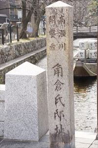 ![]() 「高瀬川開鑿者 角倉氏邸址」の石標 |