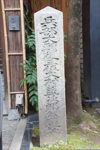 木屋町押小路下ル東側に「兵部大輔 従三位 大村益次郎公遺址(ひょうぶたゆう-じゅさんみ-おおむら-ますじろう-こう-いせきあと)」の石標が立つ。 江戸時代後期-近代の兵学者・大村益次郎は、この地にあった宿所で襲撃された。 ◆歴史年表 江戸時代、この地には、長州藩藩邸控屋敷があり、大村益次郎の常宿にもなっていた。 近代、1869年、旧7月、益次郎は、軍政根拠地を京阪地方に置くための視察で入洛する。旧9月、木屋町の旅宿(現在地)で長州・神代(こうじろ)直人ら8人に襲撃され負傷した。旧11月5日(新12月7日)、襲撃時の傷がもとで大阪の病院で亡くなる。 1926年、陸軍少将・山口鹿太郎により石標が立てられた。 ◆大村 益次郎 江戸時代後期-近代の兵学者・大村 益次郎(おおむら-ますじろう、1825-1869)。長州(山口県)生まれ。村田蔵六。村医・村田孝益の長男。防府・蘭医・梅田幽斎に入門し、豊後・広瀬淡窓に漢籍を学ぶ。1846年、大坂・緒方洪庵の適塾に医学、蘭学を学ぶ。1848年、適塾塾頭になる。長崎でシーボルトにオランダ医学を学んだ。1850年、帰郷して医業を開く。1853年、洋式兵学の専門家として宇和島藩に招かれ、1856年、江戸で「鳩居堂」を開塾し、幕府蕃書調所教授手伝、講武所教授に就任した。1860年から、長門萩藩に仕え軍制改革を行う。兵学を教え、兵書翻訳、軍艦製造も行う。伊藤博文らの海外密航も斡旋した。1865年、高杉晋作の働きにより軍司係に抜擢される。1866年、第二次長州戦争で石州口参謀になる。1868年、王政復古後、明治新政府の軍事指導者になり、戊辰戦争で官軍を指揮した。軍政事務として彰義隊征討、軍務官副知事になり箱館を鎮定した。1869年、兵部大輔になる。フランス陸軍、イギリス海軍を模範とし、近代兵制の確立に努めた。藩兵解散、徴兵制実施、鎮台・鎮守府を設置した。京都視察で、旧9月、長州の神代(こうじろ)直人ら8人に木屋町の旅宿で襲撃され負傷した。旧11月5日(新12月7日)、大阪で死去した。46歳。 陸軍の創立者であり、その構想は山県有朋らに受け継がれた。 ◆神代 直人 江戸時代後期-近代の武士・神代 直人(こうじろ-なおと、1842-1869) 。長門萩藩。大楽源太郎の西山塾に入り、尊攘派になる。1869年、同塾の太田光太郎らとともに大村益次郎の暗殺を計画し、京都で襲撃した。逃走中の小郡で逮捕され、萩で処刑された。28歳。 ◆山口 鹿太郎 近代の軍人・山口 鹿太郎 (やまぐち-しかたろう、 ?-? ) 。詳細不明。京都生まれ。陸軍士官学校9期卒、1913年、憲兵少佐、1916年、関東憲兵隊長、1917年、京都憲兵隊長、1918年、 陸軍憲兵大佐 、青島憲兵隊長、1922年、 京城憲兵隊長、1923年、陸軍少将、 待命、1923 年、予備役。 ◆襲撃事件 近代、1869年、旧7月、益次郎は、軍政根拠地を京阪地方に置くための視察で入洛する。旧9月、益次郎は、木屋町の常宿の旅宿(現在地)で仲間と食事をとった。 長州藩士の不満分子・神代(こうじろ)直人ら8人に襲撃され重傷を負う。この時は、重傷を負いながらも一命は取り留めた。その後、大阪の病院でオランダ人医師・ボードウィンの治療を受けた。旧11月5日(新12月7日)、襲撃時の傷がもとで亡くなった。 *原則として年号は西暦を、近代以前の月日は旧暦を使用しています。 *参考文献・資料 ウェブサイト「京都市 京都のいしぶみデータベース」、『新選組と幕末の京都』、『京都大事典』、ウェブサイト「コトバンク」、ウェブサイト「科・期別索引 陸士1∼10期」 ![]() ![]() ![]() ![]() ![]() |