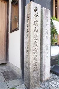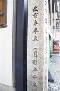 木屋町通三条上る東側に「武市瑞山先生寓居跡(たけち-ずいざん-せんせい-ぐうきょ-の-あと)」の石標か立てられている。