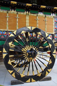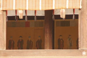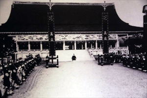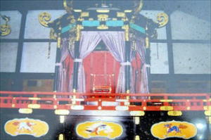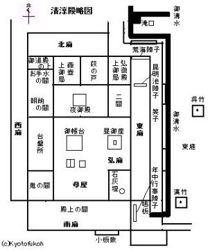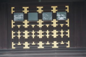 ![]() ![]() ![]() 御車寄(おくるまよせ) 、正式に参内した者が利用する玄関。 ![]() 諸大夫の間(しよだいぶのま) 、正式に参内した者の控えの間として使われた。襖絵に因み、格の高い順に「虎の間」「鶴の間」「桜の間」と別れていた。 ![]() 諸大夫の間 ![]() 諸大夫の間、桜の間、原在照筆「桜図」 ![]() 諸大夫の間、鶴の間、狩野永岳筆「鶴図」 ![]() 諸大夫の間、虎の間、岸岱筆「虎図」 ![]() 渡廊 ![]() ![]() 新御車寄(しんみくるまよせ) 、近代、1915年の大正天皇即位礼の際に玄関として建てられた。以来、天皇皇后の玄関として使われている。 ![]() 新御車寄 ![]() ![]() ![]() 新御車寄、牛車(八葉車)、網代車の一種で、大臣、公家が使用した。屋形に八葉の紋が入る。 ![]() 【参照】御三間、中段の間の障壁画にある「賀茂祭群参図」中の牛車 ![]() 新御車寄、儀装馬車2号、1928年、宮内省主馬寮で製造された。今上陛下結婚(1954) 、即位の礼(1990) でも利用された。6頭立て4頭曳き、騎馭式4人乗り。 ![]() 左腋門より承明門 ![]() 月華門 ![]() 月華門より東山の遠望 ![]() ![]() ![]() 右腋門より承明門 ![]() 承明門より紫宸殿 ![]() ![]() ![]() ![]() 承明門 ![]() ![]() 承明門より紫宸殿を望む、京都御所、三戸あり、中央は天皇のみが利用する。 ![]() ![]() ![]() ![]() ![]() 建春門、京都御所の南東、唐破風屋根の四脚門。かつては勅使が使用、近代以降は皇后皇太子が利用する。 ![]() 春興殿、京都御所内、大正天皇の即位礼の際に建てられた。即位式に際して、三種の神器のうちの御鏡を安置した。 ![]() 大臣宿所(宣陽殿) ![]() ![]() 陣座 ![]() 軒廊、奥に陣座 ![]() 南庭(だんてい) と南庭回廊、京都御所内、南庭は儀式が執り行われる場所。 ![]() ![]() 大臣宿所(宣陽殿) ![]() 紫宸殿 ![]() 紫宸殿、京都御所内即位礼などの重要な儀式が執り行われた 大正天皇、昭和天皇の即位礼も行われた 右に左近の桜、左に右近の橘 ![]() ![]() 紫宸殿、扁額 ![]() 紫宸殿 ![]() 紫宸殿 ![]() 紫宸殿(ししんでん) 、入母屋檜皮葺、高床式宮殿建築、即位礼など重要な儀礼の際に利用される正殿、大正天皇、昭和天皇の即位礼にも使われた。前に南庭(だんてい)が広がる。 ![]() 紫宸殿 ![]() 紫宸殿、南の階段木階 ![]() 紫宸殿、西の階段木階 ![]() 紫宸殿、斗栱(ときょう) ![]() 紫宸殿 ![]() 紫宸殿、左の天皇の御座、高御座(たかみくら) と、右の皇后の御帳台(みちょうだい) 。 ![]() ![]() 高御座、説明板より ![]() 高御座、説明板より ![]() 高御座 ![]() 御帳台、説明板より ![]() ![]() 紫宸殿、高御座、即位の儀式で天皇の御座となる。第123代・大正天皇即位式で造られたもの。 ![]() 紫宸殿、御帳台(みちょうだい) ![]() 紫宸殿、賢聖の障子 ![]() 紫宸殿、向かって右に左近の桜、左に右近の橘が植えられている。 ![]() 紫宸殿、右近の橘 ![]() 【参照】第123代・大正天皇の即位大礼、紫宸殿前、閑院宮邸跡収納展示館展示パネルより ![]() 桧皮葺の側面模型 ![]() ![]() 清涼殿、入母屋檜皮葺寝殿造、平安時代の内裏では、天皇の日常生活の場として使われた。 ![]() 清涼殿、鳴板 ![]() 清涼殿、衝立「年中行事障子」 ![]() 清涼殿 ![]() ![]() 清涼殿、中央の白絹の帳の奥に御帳台(みちょうだい)がある。 ![]() 清涼殿、中央の母屋には御座、昼御座(ひのおまし) という厚畳が置かれている。その上に綿入れの敷物、御茵(おしとね)が置かれる。 ![]() 清涼殿、獅子、角がなく、口を開いている。 ![]() 清涼殿、狛犬、角があり口を閉じている。 ![]() 清涼殿、台盤 ![]() 「清涼殿、昆明池障子、南面の唐絵で長安城の昆明池。 ![]() 清涼殿、昆明池障子、北面に大和絵で嵯峨野で小鷹狩をする近衛司(少将・藤原季綱とも)。 ![]() 清涼殿、 ![]() 清涼殿 ![]() 清涼殿 ![]() 清涼殿、漢竹 ![]() 清涼殿、呉竹 ![]() 清涼殿、御溝水 ![]() ![]() 清涼殿 ![]() ![]() 滝口 ![]() 御拝道廊下、東庭 ![]() 東庭、御溝水 ![]() 陣座(陣の座) ![]() 左に小御所(こごしょ) 、右は御学問所 ![]() 小御所 ![]() 小御所 ![]() 小御所 ![]() 蹴鞠の庭、小御所と御学問所の間にある。 ![]() ![]() 「御池庭(おいけにわ) 」、栗石(ぐりいし)を敷き詰めた州浜、舟着の飛石。 ![]() ![]() ![]() 御池庭、欅橋 ![]() ![]() ![]() 御池庭、欅橋 ![]() ![]() 御池庭、石橋 ![]() ![]() 御池庭、石橋 ![]() 御池庭、松 ![]() 御池庭、栗石(ぐりいし)を敷き詰めた州浜、舟着の飛石 ![]() 御池庭、栗石 ![]() ![]() ![]() ![]() ![]() 御池庭、蓬莱島、雪見燈籠 ![]() 御池庭、滝口 ![]() 御池庭 ![]() ![]() ![]() 御学問所、入母屋檜皮葺書院造、学問のほか、親王宣下、御進講、月次(つきなみ) の和歌の会などに使われた。 ![]() ![]() 御学問所、中段の間、岸岱筆「蘭亭ノ図」 ![]() 御学問所、上段の間、右に狩野永岳筆「十八学士登瀛州図 ![]() 御学問所 ![]() ![]() 御常御殿 ![]() 御常御殿、御小座敷、下の間、塩川文麒麟筆「和耕作図」 ![]() 御常御殿、東御縁座敷、杉戸絵南面、岡本亮彦筆「曲水(宴)」 ![]() 御常御殿 ![]() 御常御殿、一の間、狩野永岳筆「桃柳(朗詠の意)」 ![]() 御常御殿、一の間、狩野永岳筆、小襖「奈良八景」 ![]() 御常御殿、二の間