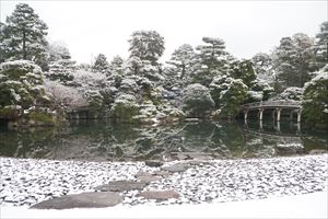 国民公園の京都御苑は、北を今出川通、南を丸太町通、東を寺町通、西を烏丸通に囲まれた地にある。東西約700m、南北約1300m、広さは91万2000㎡を有している。この地は、かつての鴨川の氾濫による沖積地だった。 京都御苑内には、京都御所(禁裏御所)、後水尾上皇邸だった仙洞御所、英照皇太后のための大宮御所、京都迎賓館(内閣府管理)などの施設がある。それ以外の国民公園は63万㎡の広さがある。 戦前の京都御苑は全体を宮内省が所管していた。現在は京都御苑を環境省、京都御所・仙洞御所・大宮御所を宮内庁が管理している。 「ミシュラン・グリーンガイド・ジャポン 1つ星観光地」に選ばれている。京都御所・京都御所御内庭は、「美しき日本-いちどは訪れたい日本の観光遺産」(日本交通公社、1999年)の一つに認定された。 ◆歴史年表 平安時代、794年、平安京遷都時の平安宮・大内裏(だいだいり、宮城)は、「四神相応」の地に営まれた。現在地(京都御苑)の西方約1.7km、南0.4kmの浄福寺通下立売付近にあった。 795年、内裏正殿の大極殿が落成する。 834年、空海は宮中での密教の修法を行い、真言院(宮中真言院、修法院、曼荼羅道場)を設けた。 835年、空海は、宮中真言院で玉体安穏などの修法を行い、現在も行われている後七日御修法の起りになる。 850年、清涼殿に新たに地蔵尊が安置され、第54代・仁明天皇四十九日の御斎会を修したという。(『文徳実録』) 960年、陣の座の夜議の松明の火により内裏が初めて炎上する。その後も度々炎上し、6、7年に一度の頻度で火災が起きた。 976年、内裏が焼失し、第64代・円融天皇は藤原兼通(堀川院)邸へ移る。里内裏の初例となる。 1159年、平治の乱で平氏により大内裏は攻撃され、内裏は占拠される。 1177年、安元の大火で内裏が炎上する。大極殿が焼死した。以後、再建されなかった。 1180年、現在地(京都御所)には権大納言・藤原邦綱邸があり、第80代・高倉天皇は第81代・安徳天皇に譲位後上皇として移る。以来、天皇の御殿になる。 鎌倉時代、1189年、源頼朝は諸国に命じ、内裏修造の工事を始める。 1227年、内裏が焼失する。その後、再建されることはなく、一時、跡地が荒野と化し「内野」と呼ばれる。 天皇は里内裏(さとだいり、おもに藤原摂関家) に暮らした。現在地(京都御所)には、仮の皇居・里内裏の一つである東洞院土御門殿(もと大納言・藤原邦綱邸)があった。 1267年、東洞院土御門殿で第91代・後宇多天皇が生まれる。 1290年、浅原為頼父子らが内裏に侵入し、天皇暗殺を企て未遂に終わる。亀山上皇近臣・三条実盛が六波羅に捕らえられた。 1331年、北朝初代・光厳天皇が六波羅館(ろくはらやかた)より現在地(京都御苑・京都御所)に移り即位し、御所(在所、里内裏、土御門東洞院)と定める。 1336年以来、里内裏が北朝歴代の皇居(土御門内裏)として定着する。北朝第3代・崇光天皇、北朝第5代・後円融天皇の御座所になる。 南北朝時代、1375年、足利義満が初めて参内し、後円融天皇に対面する。 1380年、足利義満が頻繁に参内する。 1381年、正月、足利義満は白馬節会に参内する。 1392年、旧10月25日、神器帰座(じんぎきざ)日程は決定した。旧10月28日、南朝側は吉野を発ち、橘寺、興福寺を経て、旧閏10月2日夜に大覚寺に到着、旧11月5日に神器(八咫鏡、八尺瓊勾玉、草薙剣)は内裏に置かれた。南北朝合一以後、北朝天皇の住んだ土御門東洞院殿(現在地)が京都御所になる。 室町時代、1393年、旧12月、後亀山上皇より内裏二間の本尊が内裏に返された。 1401年、内裏が焼失する。 1402年、室町幕府により内裏が再建された。 1443年、内裏が放火により焼失する。旧9月、南朝の尊秀王(金蔵王)は、日野有光とともに内裏に乱入し、神璽、宝剣を奪い比叡山に立て籠もった。第102代・後花園天皇は辛うじて逃れる。尊秀王は比叡山衆徒に攻められ討死した。宝剣は戻され、神璽はその後16年間行方不明になる。 1456年、康正度内裏が完成する。 1465年、太政官が第103代・後土御門天皇の即位礼に伴い建てられる。 応仁・文明の乱(1467-1477) により、荒廃する。 1477年、室町幕府は内裏の修造を始める。 1521年、第104代・後柏原天皇は里内裏(土御門東洞院殿)紫宸殿で即位礼を行う。 1543年、織田信長による料理料の献上がある。鴨川の水が堰入れられ、池泉庭園の造営が進む。 1569年、織田信長は内裏の大規模な修造「永禄(度)内裏」を行う。 [永禄(度)内裏] 安土・桃山時代、1575年、信長の修造が終わる。 1581年、信長は、禁裏東門外に行宮を設け、第106代・正親町天皇を招いた。権勢誇示のために700騎の馬揃えを催し、20万人の見物人が出た。 豊臣秀吉の都市改造により、公家邸の御所周辺への集中が行なわれる。 1585年、旧10月、秀吉は正親町天皇のために仙洞御所を造営する。禁中小御所で、関白任官を記念し初の茶会を開く。金で新調した道具類を披露した。茶堂・宗易は天皇より「利休」の居士号を拝受する。 1586年、旧正月、秀吉は、禁中小御所に黄金の茶室を運び込み