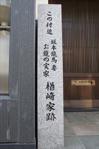 柳馬場通三条下ル東側に「坂本龍馬妻 お龍の実家 楢崎家跡(さかもとりょうま-つま-おりょう-の-じっか-ならざきけ-あと)」の石標が立つ。 付近に、楢崎家があったという。 ◆歴史年表 江戸時代後期、この地に医師・楢崎将作(1813-1862)の家があったという。龍も一時、住んだという。 現代、2008年、10月、NPO法人京都龍馬会により石標が立てられた。 ◆楢崎将作 江戸時代後期の医師・楢崎将作(ならざき-しょうさく、1813-1862)。氏は藤原、諱は貺(たまう)、字は大蔵、号は東崦、繁杏。奈良崎大造豊明の子。母は重野貞。長女は坂本龍馬の妻・お龍。父を継ぎ、京都柳馬場三条南で内科・外科医を営む。青蓮院宮尊融法親王の侍医になる。1858年、安政の大獄に連座して捕えられた。1589年、釈放される。京都の自宅で没した、六角獄舎で獄死したともいう。49歳。 梁川星巌、紅蘭、梅田雲浜、頼三樹三郎、池内大学ら尊王派と交流した。 西林寺(中京区→左京区)に葬られたという。 ◆楢崎龍 江戸時代後期-近代の女性・楢崎龍(ならさき-りょう、1841-1906)。お龍(おりょう)、西村龍、春。京都の生まれ。青蓮院宮の侍医・楢崎将作の長女、母は貞(夏)。1862年、勤王家の父が安政の大獄で捕えられ、赦免後病死し家族は離散する。お龍は七条新地の旅館「扇岩」で働く。1864年頃、龍馬と出会い、親戚筋の知足院の仲介により、金蔵寺で内祝言を挙げた。1865年、秋頃、龍馬はお龍の身柄を「寺田屋」女将・お登勢に託した。春と名付けられ娘分として寺田屋に置かれた。1866年、1月、龍馬は寺田屋に投宿し、お龍の機転により伏見奉行配下の捕吏より脱出した。(寺田屋事件)。龍馬の刀傷治療のためにともに薩摩へ下る。お龍は途中の長崎で下船し、小曾根英四郎家に預けられた。1867年、下関の伊藤助太夫家に妹・起美と過ごす。龍馬暗殺(近江屋事件)後、1868年、土佐高知・坂本家に移り、妹・起美の嫁ぎ先の安芸郡・千屋家(菅野覚兵衛の実家)へ移る。1869年、寺田屋のお登勢を頼る。1875年、東京の呉服商人・西村松兵衛と再婚し、「ツル」に改名して横須賀に暮らした。妹・光枝がお龍を頼る。松兵衛と光枝が内縁関係になり、お龍は別居した。晩年、退役軍人・工藤外太郎に保護された。月琴を奏でた。 66歳。 墓は信楽寺(横須賀市)にあり、京都霊山護国神社(東山区)に分骨された。 ◆お龍・龍馬 お龍は青蓮院宮に仕え内・外科医の楢崎将作の長女として富小路六角付近に生まれる。その後しばらくして現在地(柳馬場通三条下ル)に移り住んだという。 1862年に父没後、家族は離散し、母・貞と妹・君江は河原屋五兵衛(五郎兵衛)の隠居所に住み、土佐藩浪士のための賄をした。ここに龍馬も住んでおりお龍と龍馬は知りあう。龍馬はお龍にについて姉・乙女への手紙に、「まことにおもしろき女」と書き送った。 ❊原則として年号は西暦を、近代以前の月日は旧暦を使用しています。 ❊参考文献・資料 ウェブサイト「京都市 京都のいしぶみデータベース」、『京都大事典』、『新選組と幕末の京都』、『京都幕末維新かくれ史跡を歩く』、『坂本龍馬大事典』、ウェブサイト「コトバンク」 ![]() ![]() ![]() ![]() ![]() ![]() ![]() ![]() ![]() |
