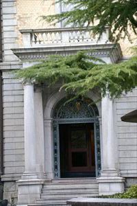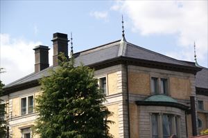 長楽館(旧村井吉兵衛邸)は、「たばこ王」と呼ばれた実業家・村井吉兵衛の別邸として建てられた。地元では「村井の別荘」と呼ばれていた。現在は、ホテル、レストラン、喫茶店などに利用されている。 政治家・伊藤博文が当館に宿泊した際に、「長楽館」と名付けている。村井夫妻が「長く楽しむ」の意味という。博文は「この館に遊ばば、其の楽しみや けだし長(とこし)へなり」と詠んだという。ただ、近くにある長楽寺のことは考慮していなかったという。 ◆歴史年表 近代、1897年、10月、村井吉兵衛は、円山の一角(623坪、2059.5㎡)を4万6361円で購入する。 1904年、村井吉兵衛の別荘として、長楽館の建設に着手した。3月29日、小説家・夏目漱石の日記に、長楽館建築の様子が記されている。(『漱石全集』13巻) 1905年、日ロ戦争で建設工事は一時中止になる。 1907年、6月、棟上になった。 1908年、洋画家・高木背水(たかぎ はいすい)が、1階の迎賓の間の壁画を描く。 1909年、6月、竣工した。伊藤博文は「長楽館」と扇額に揮毫した。 1915年、3階の和室が改造された。第123代・大正天皇の御大礼でロシア、イタリア使節団の宿泊施設になる。 1919年、米国に一部接収され、設備などが一部改修される。 1927年、昭和金融恐慌のあおりを受け、村井財閥は解体する。長楽館は売却された。その後、複数の手に渡る。 現代、1954年、土手富三は、長楽館の土地・建物を購入した。以後、改修が継続される。 1980年頃、3階の修復が終わった。 1986年、長楽館・調度品は、京都市指定有形文化財登録に指定される。 2013年、庭園は、京都市「京都を彩る建物や庭園」に認定される。ヒマラヤスギ・ヒロハノナンヨウスギは、東山区「区民の誇りの木」に認定された。 2024年、建物は重文に指定された。 ◆村井 吉兵衛 江戸時代後期-近代の実業家・村井 吉兵衛(むらい-きちべえ、1864-1926)。男性。小三郎。京都生まれ。父はタバコ商・村井弥兵衛でその次男。1872年、9歳で分家の伯父・吉右衛門の養子になり、吉兵衛を名乗る。1878年、家督を継ぎタバコ販売、種油、両替商を営む。20歳-21歳頃、同志社病院に入院し、宣教医・ベリーに出会う。洋書『百科製造秘伝』を借り、担当医・堀俊造の翻訳により紙巻きタバコ製法の知識を得た。1889年、宇野子と結婚した。1890年、村井兄弟商会を興す。1891年/1890年、日本初の洋風両切紙巻タバコ「サンライス」を発売し、好評を博した。輸入品の「サンライト」を日本葉を原料にして、日本人の嗜好に合う香料を加味する。1893年、渡米し、タバコの製法を研究した。1894年、輸入したアメリカ合衆国バージニア葉タバコを原料にした「ヒーロー」を発売する。景品付き販売、広告宣伝も工夫した。アジアにも輸出している。 1899年、アメリカ合衆国の「世界のタバコ王」デュークと組む。アメリカ合衆国・タバコトラスト社との折半出資で株式会社(資本金1000万円)に改組した。製品包装印刷のために、京都に外国人技師を雇入れた印刷会社を設立する。デュークが経営を主導し、その後3年で市場占有率3割を占めた。事業を引き継いだBAT社により増資提案され、外資系企業になる。1900年、「ヒーロー」が生産日本一になる。1904年、日ロ戦争の戦費調達のために、煙草専売法が公布され、タバコ民営は終わる。吉兵衛は、政府への売却金(1120万円)をもとに、村井銀行(資金100万円)を創立し頭取に就く。1909年、京都円山に別荘「長楽館」などを建てた。1912年、本店を京都から東京に移している。1916年、宇野子が病没する。1917年、第122代・明治天皇の権典侍・山茶花(さざんか)の局(日野西薫子)と再婚した。1926年、東京の本邸で亡くなる。63歳。 村井は、帝国製糸会社、村井貯蓄銀行、村井倉庫、村井汽船、東洋印刷、日本石鹸、村井カタン糸などを設立する。鉱山、石油業、台湾製糖、帝国ホテル、帝国劇場、明治貿易などの経営陣にも加わる。東京商業会議所特別会員になった。「日本のタバコ王」と呼ばれた。1912年-1926年、村井銀行五条支店の2階に、「村井児童図書館」を開設している。別荘「長楽館」は京都に残る。東京の本邸「山王荘」は、比叡山延暦寺の大書院として移築され現存する。 墓は総持寺(横浜市)にある。 ◆ガーディナー 近代の宣教師・建築家・教育家・ガーディナー.ジェームズ.マクドナルド(Gardiner James McDonald、 1857-1925)。男性。アメリカ合衆国ミズーリ州生まれ。1875年、ハーバード大学建築学科に入学した。1877年、ハーバード大学を中退し、ニューヨークで実務に携わる。1880年、米国聖公会伝道局より派遣され来日した。東京・立教学校(現・立教大学)のウイリアム主教に招かれ英文学を講じる。1882年、同校の新校舎設計を完成させた。1892年、神学校などを完成させる。1893年まで、同校校長になる。1894年、ハーバード大学学部学位を取得し、立教大学校教授になる。1904年、伝道局を退く。建築事務所を開設する。 京都では聖アグネス教会聖堂(聖三一大聖堂、1898)、京都聖ヨハネ教会堂(1907