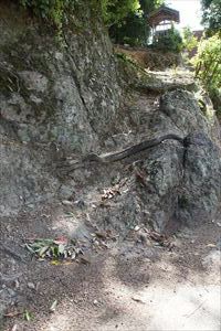 大枝沓掛町(おおえ-くつかけ-ちょう)の関ノ明神社(せきのみょうじん-しゃ)は、岩崖上にある小祠に祀られている。 旧山陰道沿いの付近には、かつて関所の大江関(おおえのせき)が置かれた。 祭神は、関の明神(せきのみょうじん)になる。 ◆歴史年表 創建、変遷の詳細は不明。 室町時代、大江関は、天龍寺領の年貢輸送に必要な人夫(兵士)、糧(粮)物調達のために設置されていた。 ◆大江関・沓掛 「大江関(おおえのせき)」は、大江沓掛町付近にあった。旧山陰道沿の山城国から丹波に抜ける老ノ坂峠の手前に設けられた関所だった。 関所は、室町時代に天龍寺領の荘園年貢運送に必要な人夫(兵士)、糧(粮)物調達のために利用されたとみられている。 文献初見は、室町時代前期、1398年に醍醐寺領丹波黒岡庄の年貢輸送が、当関所を通過するための許可を得ている。(「三宝寺文書」中「室町幕府奉行人過所案」) 天龍寺はこの関所の設置により多額の収益を上げていたという。その後の関所については不明。 ◆沓掛 付近の「沓掛(くつかけ)」の地名は、古代駅舎、駅停(亭)を意味した。沓(履物)を掛けておく店、また、峠にあり、旅の安全の祈願所、山神に旅の加護を祈り、手向する処などの意味もあった。 ❊原則として年号は西暦を、近代以前の月日は旧暦を使用しています。 ❊参考文献・資料 『京都大事典』、『京都市の地名』、『京都の地名由来辞典』 ![]() ![]() ![]() ![]() ![]() ![]() |