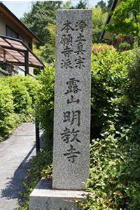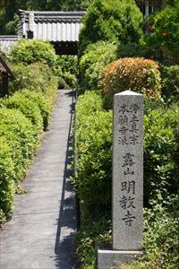 小山御坊ノ内町(こやま-ごぼうのうち-ちょう)の高台に、明教寺(みょうきょう-じ)はある。山号は露山という。 浄土真宗本願寺派。 ◆歴史年表 創建、変遷の詳細は不明。 平安時代、貞観年間(859-877)/859年、創建されたという。(寺伝)。円仁(794-864)が牛尾山山中(東音羽山とも)に建立した、連玉山十住心院を前身にするともいう。当初は天台宗であり、聖徳太子作という千手観世音菩薩を安置した。 862年、勅願所になり鎮護国家の道場になる。 応和年間(961-964)、焼失した。その後、再建される。後に水害で流出したという。(『宇治郡名勝志』) 1058年、多田源氏系統とされる駿河守・中川頼道が山科に移住し、院に深く帰依した。以後、同家氏寺になる。 1444年まで、歴代23世が寺を継ぎ護持した。 室町時代、1469年? 、小山の郷士・中川喜平治(24世・玄入)が本願寺7世・存如に帰依し創建した。真宗本願寺派に改めたという。(『京都府山科町誌』)。以後、中川家の氏寺になり、住職は中川家が代々相続した。 一時期、円如上人(1491-1521)の在所になったという。 安土・桃山時代、天正年間(1573-1593)、類焼した。 慶長年間(1596-1615)、中川市左衛門(26世・教善)は、牛尾山寺尾から小山御坊内に移して再興した。(「比留田家文書」中「寺社御改帳」) 1596年、木仏、寺号の明教寺を得る。 江戸時代、1750年、了空の時、小山村内で移転している。 ◆円仁 平安時代前期の天台宗の僧・円仁(えんにん、794-864)。男性。姓は壬生、諡号は慈覚大師。慈覚大師。下野国(栃木県)の生まれ。9歳で大慈寺の広智に学び、808年、15歳で唐より帰国した比叡山の最澄に師事、その最期まで14年間仕えた。815年、東大寺で具足戒を受ける。比叡山で12年の籠山行に入る。だが、5年後、法隆寺、四天王寺での夏安吾(げあんご)講師、東北への教化を行う。一時心身衰え、829年、横川に隠棲した。苦修練行を続け、夢中に霊薬を得て回復し、『法華経』書写を始め、小塔(如法堂)を建て写経を納めたという。838年、最後の遣唐使と して渡り、9年間学ぶ。847年、帰国、仏典、金剛界曼荼羅など多数を持ち帰った。新羅声明を天台声明として取り入れ、その祖となる。848年、比叡山に戻り、円珍に密教を教えた。854年、第3世・天台座主に就く。862年、東塔に天台密教の根本道場・総持院を建立した。東京・瀧泉寺、山形・立石寺(円仁の遺体納葬の入定窟がある)、松島・瑞巌寺など多くの寺を開いた。『顕揚大戒論』ほか、唐滞在記である『入唐求法巡礼行記』(全4巻)を著す。没後、日本初の大師号(慈覚大師)を贈られた。入唐八家(最澄・空海など)の一人。71歳。 円仁は、法華経と密教は同等であり、円密は一致するとし、天台密教(三部密教、胎蔵部、金剛部、蘇悉地部)を確立した。また、浄土教を一乗思想として天台宗に取り入れた。 ◆円如 室町時代後期の真宗の僧・円如(えんにょ、1489-1521) 。男性。圓如、法名は光融、院号は遍増院。山科本願寺生まれ。父・浄土真宗本願寺9世・実如、母・如祐(高倉永継の娘)の次男(第3子とも)。12歳の時、兄・證如(証如)が早世し、本願寺法嗣になる。北陸門徒への一向一揆の禁止など3か条の戒めを発布した。本願寺一族の嫡男・次男以下を分ける「一門一家制」を設けた。祖父・蓮如の消息「御文(おふみ)」(80通、5帖)をまとめた。1521年、急死する。31歳。 父に先立っており、歴代法主ではない。妻は叔父・願証寺住持・蓮淳の娘・慶寿院。子・証如が本願寺10世を継いだ。 小山の明教寺(山科区)を一時期在所にしたという。墓は山科区小山にある。 ◆中川喜平治 室町時代中期の郷士・中川喜平治(?-1453?)。男性。小山郷士。幼少から道心があった。出家し、1444年、本願寺7世・存如に帰依した。玄入と号した。1469年?、小山に明教寺を創建した。 ◆観音像 かつて、牛尾山(山科区)山中の十住心院本堂(明教寺前身)に、等身大の「十一面観音像」が安置されていた。ある時、山崩れ洪水(土石流)が起こる。仏閣は流出し、観音像も行方不明になる。 数年後に、音羽川下流に流された像は、夜に光を放った。東野(山科区)の村人が怪しみ、鋤鍬(すきくわ)により水底から像を見つけた。また、農民が土中より見つけたともいう。村人は深く帰依し、仏閣(松声庵の別殿、現在の称名寺)を建て像を安置した。 また、像は一度、十住心院に戻されたともいう。その後、再び東野まで流されたため、お堂を建てて安置したという。称名寺では、「鍬形(くわがた)観音」「鍬形痕(くわがたあと)観音」と呼ばれ信仰を集めた。 ◆文化財 ◈中川喜平治の子・玄鎮は、父・の遺言により蓮如に帰依した。この時、蓮如が玄鎮に贈った六字名号「真宗帰の名号」がある。巻物、書付がある。 ◈「明教寺文書」として、縁起(年未詳)、什物帳(年未詳)、中川家系図、蓮如上人御文写、仏飯講取結についての本寂判物、蓮如上人など歴代からの真筆名号下賜物一覧、移転した際の奉行所への届書・絵図などがある。 ❊原則として年号は西暦を、近代以前の月日は旧暦を使