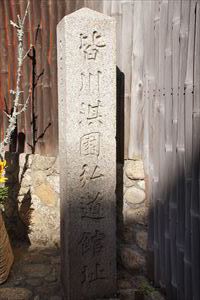 有斐斎弘道館(ゆうひさい-こうどうかん)の門脇に、「皆川淇園弘道館址(みながわ-きえん-こうどうかん-あと)」の石標が立てられている。 この地には、江戸時代中期-後期の儒者・皆川淇園の邸宅、私塾「弘道館」があった。 ◆歴史年表 江戸時代、1805年、皆川淇園は、自邸(中立売室町西入町)の西隣の土地を買い上げ、私塾「弘道館」を設立する。 1806年、5月、弘道館が落成した。 近代、1917年、3月、京都市教育会により石標が立てられた。寄付者は山田長左衛門による。(『京都市教育会沿革略』) 現代、2009年、弘道館跡に建てられていた数寄屋建築、庭園の取壊しの危機があった。 2013年、公益法人になり、建物、庭園が保存される。 ◆皆川淇園 江戸時代中期-後期の儒者・皆川淇園(みながわ-きえん、1735-1807)。名は愿(げん)、字は伯恭(はくきょう)、号は淇園、斎(きょうさい)、有斐斎、呑海子、通称は文蔵。京都生まれ。父・東福門院の御典医・成慶(春洞)、母・塩釜氏。9人兄弟の2番目の長男になる。弟は国学者・富士谷成章(ふじたに-なりあきら)になる。子に皆川篁斎(こうさい)。4歳-5歳の頃、父が与えた杜甫の詩をすぐに暗記したという。1748年、朝鮮通信使の来訪に際し、弟・成章と見に行き、席上で詩を唱和し、通信使を驚かせたという。父、儒者・大井蟻亭、伊藤錦里、三宅元献に学ぶ。安永-天明年間(1772-1788)、漢字の字義、易学を研究し、「開物(かいぶつ)学」を提唱した。折衷考証学で、字義を音韻によって究め、「名」によって「物」を見た。1759年より、京都・中立売室町西入町に住み、儒学を講じた。1761年、亀山藩主・松平信岑の聘に応じ賓儒になる。1764年、亀山藩、幕府の命により朝鮮通信使を枚方で遇した。1765年、産科学・賀川玄悦を助け、医書『産論』4巻をまとめる。1784年、柴野栗山、赤松滄洲らと詩社「三白社」を興した。1805年、自邸西隣に私塾「弘道館(有斐斎弘道館)」を開く。私立大学の先駆とされる。 亀山藩、平戸藩、膳所藩藩主に賓師として招かれた。「古学四大家(ほかに、岩垣竜渓、佐野山陰、村瀬栲亭)」の一人と称された。漢詩文・書画に秀でた。師・円山応挙につく。画は望月玉蟾に学び、画家・呉春、画家・岸駒、画家・長沢蘆雪、国学者・上田秋成、儒者・清田儋叟、俳人・画家・与謝蕪村などと交遊があった。1784年、筑前(福岡県)志賀島から出土した金印「倭奴国王印(漢委奴国王)」(国宝)の鑑定を行う。琵琶湖周辺で発見された更新世中期(62万-57万年前)のトウヨウゾウ(東洋象、長鼻目ステゴドン科,Stegodon orientalis)の化石鑑定も行った。著『名疇(めいちゅう)』『易学開物』など。74歳。墓は阿弥陀寺(上京区)にある。 門人3000余人あり、文人・本草学者・木村蒹葭堂(きむら-けんかどう)、「寛政の三博士」の一人・儒学者・尾藤二洲(ひととう-にしゅう)、儒学者・巌垣松苗の父・彦兵衛、随筆『甲子夜話』著者の平戸藩主・松浦静山、平戸藩主・松浦熈、丹後宮津藩主・松平宗允、膳所藩主・本多康完、亀山藩主・松平信岑などがいる。 ◆山田長左衛門 近代の富商・山田長左衛門(?-?)。詳細不明。号は永年。この地に隠宅を構えた。詩人、書家、古典籍の蒐集家としても知られた。 ◆弘道館 江戸時代、1805年に、皆川淇園は私塾(学問所)「弘道館」を開き、門人3000人を集めたという。 自邸は、「中立売通室町西入町」にあったと記されている。(『平安人物志』1768)。その西隣に弘道館は建てられている。 また、近代、1917年に、「皆川淇園宅址」(室町中長者町西)」に、「史蹟保存石標」を立てたという。(『京都市教育会沿革略』)(京都のいしぶみデータベース)。現在の石標の位置は、敷地の南側であり上長者町通側になる。 なお、2009年に、弘道館跡に建てられていた数寄屋建物、庭園の取壊しの危機があった。その後、研究者、企業人有志による保存の動きが始まる。2013年に公益法人になり、建物、庭園が保存されている。 ❊原則として年号は西暦を、近代以前の月日は旧暦を使用しています。 ❊参考文献・資料 ウェブサイト「京都市 京都のいしぶみデータベース」、有斐斎弘道館の説明板、ウェブサイト「有斐斎弘道館」、『京都大事典』『増補版 京の医史跡探訪』、ウェブサイト「コトバンク」 ![]() ![]() ![]() ![]() ![]() |