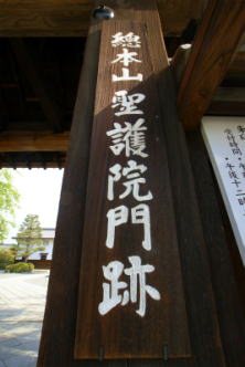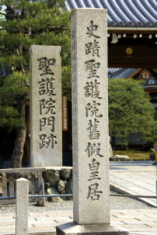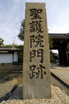 聖護院(しょうご-いん)門前には、「聖護院門跡」「聖護院旧仮皇居」の石標が立つ。境内は国指定史跡(1936)になっており、5000坪(16000㎡)を有する。古く一帯には、「聖護院の森」が広がっていた。 正式には「聖護院門跡」という。皇室とゆかりが深い。もと天台宗寺門派の大本山で、寺門派(三井寺)三門跡(ほかに圓満院、実相院)の一つに数えられる。修験道との関わりもある。本山派修験の管領として全国の修験者の統括を命じられ、 当山派(三宝院)とともに修験道を二分した。最盛期には全国に2万余の末寺があった。 本山修験宗(ほんざん-しゅげんしゅう)の総本山、本尊は不動明王。 近畿三十六不動尊第188番霊場、神仏霊場会第112番、京都第32番。 役行者は空を飛んだとされ、航空安全の信仰もある。 ◆歴史年表 平安時代、天台宗寺門派の祖・円珍(814-891)は、愛宕(おたぎ)郡岩倉長谷(ながたに、左京区)に「常光寺(常光院)」を建立した。円珍没後、5代(増命、勢祐、智静、最円、静覚)に渡りその法脈が継がれた。当初は天台宗だった。 1090年/寛治年間(1087-1094)、白河上皇(第72代)は熊野三社を参拝した。園城寺の増誉(ぞうよ)が先達を務めたという。その功に対し、増誉は、修験道を統括する初代・熊野三山検校職に任じられた。修験道統括、法務のために、勅願により増誉を開基として白河院が創建された。当初は「白川房むという庵が結ばれたともいう。(『諸門跡譜』)。当院の直接の起こりになる。また、円珍の建立した常光寺を下賜されたともいう。 平安時代後期、3世・覚忠(かくちゅう、1118-1177)の時、「聖体護持(聖を守った寺、聖体である上皇の守護)」より、二文字を採り、院名は「聖護院」とした。(『坊目誌』) 鎌倉時代、1202年、第77代・後白河天皇皇子・4世・静恵(じょうえ)法親王が入寺した。その後は門跡寺院になる。法親王以後、熊野三山検校職は門跡が受け継ぐことになる。(『聖護院記録』)。園城寺長吏を兼ねた。 1313年、覚助法親王が大峰に登拝した。 鎌倉時代末-室町時代、聖護院に本山派山伏、醍醐寺・三宝院に当山派山伏が組織される。 南北朝時代、門跡・良瑜(りょうゆ、1330-1397)が入寺する。 室町時代、1412年、足利義持が訪れた。 門跡・道興(1430-1527)の時、諸国の天台系修験教団の組織を確立した。 1468年、旧8月、応仁・文明の乱(1467-1477)により焼失した。(『碧山日録』)。その後、旧地の岩倉・長谷(左京区)の覚忠の開いた宿坊へ移る。失火によるともいう。 1481年、旧10月、日野富子と不和になった8代将軍・足利義政が出家し岩倉・長谷の聖護院に入寺した。堂宇が整えられる。(『大乗院寺社雑記』『親長卿記』) 1487年、旧4月、義政の堂舎は、盗賊の放火により焼失した。門主・准皇后は、東国巡礼で不在のために難を逃れた。(『大乗院寺社雑記』) 1531年、京勢は、聖護院、在家を焼く。 安土・桃山時代、豊臣秀吉により大聖寺移転跡(上京区御所八幡町、烏丸今出川上ル)に移る。(「寛永年間平安城東西南北町並之図」)。岩倉・長谷には山荘が建てられた。(『隔蓑記』) 江戸時代、1609年、幕府は聖護院に対して修験道法度を下した。天台修験道本山派の本山になり、山伏を直管した。(゜御当家令状」) 1613年、旧5月、幕府は修験道本山・当山の修験法令を発し、本山派山伏は当山派山伏に対して断りなく役儀を行うことを停禁したという。 1615年、御所八幡町に移ったともいう。 1620年、旧2月、上京大火により焼失している。(『泰重卿記』) 1675年、旧11月、延宝の大火で焼失した。(『基煕公記』) 1676年、第108代・後水尾天皇皇子・道寛法親王の時、現在地(左京区)に移され再興される。この地にはかつて、聖護院親王の宅地があった。(『京城勝覧』)。現存する本堂、宸殿、表門、書院、玄門など多くが建てられた。院家(いんげ)の積善院、住心院、伽耶院、若王子、花台院、智光院があった。(『京都御役所向大概覚書』) 1733年、庫裡が建てられた。 1770年以降、北白川・照高院(白川御殿)を聖護院が兼帯した。 1788年、旧1月、天明の大火により御所が焼失し、第119代・光格天皇の仮御所として3年間使われる。(「鴨脚家文書」「小久保家文書」) 1830年、旧7月、京都大地震(文政の大地震) で、御殿筑地塀が崩れた。外から広間が見えたため、幕を張り昼夜にわたり火の元の警護を行った。(『甲子夜話』) 1854年、旧4月、御所の大火(嘉永の大火)の際に、第121代・孝明天皇、皇子祐宮(後の第122代・明治天皇)の仮御所になった。(『三代和気平吉日記』)。孝明天皇妹・和宮が仮住まいする。 近代、1868年、神仏分離令後の廃仏毀釈により、他寺の不動明王像が遷される。維新後、山階(やましな)宮の在所になる。 1869年、和宮は江戸より聖護院に入り、参内して明治天皇と対面する。明年の仁孝天皇25回忌までは京都に逗留することが徳川家に布告され、聖護院の屋敷が栄御殿と改称される。 1871年、江戸幕府の定めた三門跡制(宮門跡、摂家門跡、准門跡)の門跡号が廃止になる。寺領が上知される。その後、596
