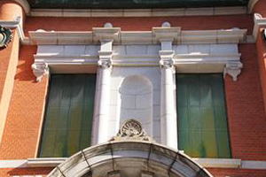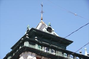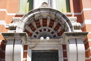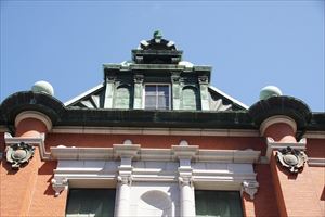 三条通高倉西入ル北側に、赤煉瓦造の京都文化博物館別館(きょうと-ぶんか-はくぶつかん-べっかん)が建つ。 前身は旧日本銀行京都支店(きゅう-にっぽんぎんこう-きょうとしてん)であり、近代の建築家・辰野金吾、その弟子・長野宇平治が設計した。 ◆歴史年表 近代、1894年、4月、日本銀行京都出張所は東洞院通御池上ルに開設された。 1903年、9月、現在の建物が現在地(三条通高倉西入ル)で着工する。 1906年、6月、竣工した。7月、日本銀行京都出張所が移転した。 1911年、 6月、京都出張所から「京都支店」に名称変更している。 現代、1965年、10月、日本銀行京都支店は河原町通二条に移転した。 1967年、4月、旧建物を「財団法人古代學協會」が所有する。 1968年、5月11日、「平安博物館」として開館した。(「京都新聞」) 1969年、3月、建物は国の重要文化財に指定された。 1986年、 4月、 京都府に寄贈され、修理・復元される。 1988年、10月、「文化博物館博物館別館」として一般公開された。 1997年、三条通周辺は京都市の「界わい景観整備地区」に指定された。 2005年、5月、補修工事が実施される。 ◆辰野 金吾 江戸時代後期-近代の建築家・教育者・辰野 金吾(たつの-きんご、1854-1919) 。男性。旧姓は松倉。唐津(佐賀県)生まれ。唐津藩藩士・姫松倉右衛門の次男。1868年、辰野宗安の養嗣子になる。1873年、工部省工学寮に入学した。イギリス人・建築技師・ジョサイア・コンドル(Josiah Conder,1852-1920)の指導を受ける。1879年、工部大学校(工学寮)造家学科の第1回卒業生として卒業した。1880年、留学のためロンドンのコンドルの師・バージェス(William Burges,1827-1881)建築事務所などで建築を研修した。フランス、イタリアも回る。1883年、帰国し工部省に入る。設計の処女作になった銀行集会所(1885)の設計を行う。1884年、コンドルの後任として、工部大学校教授に就任し、日本建築講座を担当する。1886年、辰野建築事務所を設立した。造家学会(現在の日本建築学会)創立に参加した。1887年、日本銀行の設計者に決定し渡欧する。1888年、帰国した。1898年、建築学会会長、工科大学長に就任する。1902年、工科大学を退官した。1903年、教え子の葛西萬司と東京・辰野葛西事務所を開設した。1905年、片岡安と大阪・辰野片岡事務所を開設する。議院建築調査会委員を歴任する。工学博士。66歳。 「日本近代建築の父」といわれた。日本人で洋風建築技術を最初に学ぶ。創成期の日本近代建築を主導した。門弟に伊東忠太、関野貞、大熊喜邦らがいる。主な作品は、工科大学本館(1888) 、日本銀行本店(1896) 、両国国技館(1909)、東京中央停車場(東京駅、1914) などがある。 ◆長野 宇平治 江戸時代後期-近代の建築家・長野 宇平治 (ながの-うへいじ、1867-1937) 。男性。越後国(新潟県)生まれ。1893年、帝大工科大学(現在の東京大学)造家学科卒、横浜税関嘱託を経て、1894年、奈良県嘱託になる。1895年、奈良県庁舎を設計した。1900年、日本銀行技師長になり、名古屋、京都、函館支店などの設計を担当した。1907年、靖国神社記念門案(1940)を設計する。1909年、台湾総督府庁舎計画案(1942)を設計した。1913年、長野建築事務所を設立した。1927年、ジュネーブの国際連盟本部の競技設計募集に日本で一人応募する。1931年、日本建築士会初代会長に就き、建築士法成立に尽力した。1932年、大倉精神文化研究所本館(現在の横浜市大倉山記念館)を設計した。 和風意匠を初めて試みた。多くの銀行建築を手掛けた。 ◆建築 日本銀行京都支店の建物は近代、1906年に竣工した。設計は辰野金吾と弟子・長野宇平治による。1965年まで日本銀行京都支店として使用された。保存状態がよく、明治期(1868-1912)中期の京都での代表的な洋風建築になっている。1969年に国の重要文化財に指定された。 ◈別館の営業棟は、三条通に南面して建つ。日本銀行大阪支店に次ぐ規模がある。外観は左右対称で、2階窓下の赤煉瓦に白い花崗岩(京都府亀岡市の小金岐産、岡山県笠岡市の北木島産)の石材を帯状に混用している。2階窓部、壁と屋根の接する部分にも同様の装飾がある。この白線が帯石・隅石として配され、壁面に装飾的な変化をつける。さらに、屋根は高屋根・小塔などで飾る。初期の辰野式(フリー・クラシック)と呼ばれ、19世紀後半、、辰野のイギリスの留学時代に流行った。クイーン・アン・リバイバル様式を取り入れている。細部は古典主義、骨格はゴシックの要素も加味されている。辰野は、この手法で百数十件を建て、日本では辰野式と呼ばれた。 屋根は、鉄板・スレートで複雑な意匠になっている。屋根上には通気塔、意匠の異なる採光窓(ドーマー窓)を設けている。両翼には尖塔形の塔を立てる。南正面中央に入口があり、重い鉄戸が設けられている。入口上部に半円形の破風があり装飾が施されている。 内部には、旧営業室中央部に抜き抜けの空間があり、天井・柱・手摺などは茶色、壁面は白色に配色されている。カウンターのスクリーン・壁面、客溜り・営繕