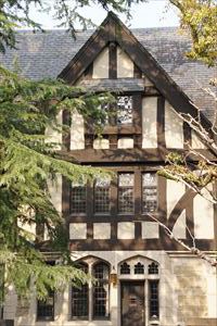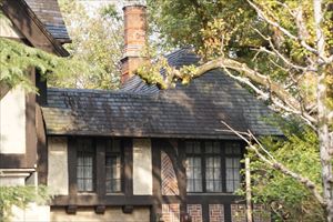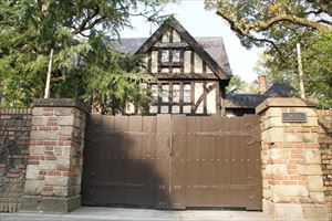 烏丸通丸太町上ル西側に、大丸(だいまる)ヴィラ( villa,別荘)は建つ。11代・大丸百貨店主・旧下村正太郎邸(きゅう-しもむら-しょうたろう-てい)であり、「下村ハウス」とも呼ばれていた。 ヴォーリズ建築設計事務所の設計により建てられた。 ◆歴史年表 近代、1932年、第11代・下村正太郎の旧宅は竣工した。 1933年、5月3日、ドイツ人建築家・ブルーノ・タウトは下村邸を訪れた。正太郎、W.ヴォーリズらと会い下村邸に宿泊する。4日-5日、ブルーノ・タウトは市内各所を巡り再び邸を訪れた。(『日本 タウトの日記 1933年』)。 現代、1984年6月、京都市登録文化財に指定されている。 ◆下村 正太郎 近代の実業家・下村 正太郎(しもむら-しょうたろう、1883-1944)。男性。父・10代・下村正太郎。1906年、早稲田大学商科に入学した。1907年、家運危機により中退する。1908年、欧米視察し、11代・大丸百貨店主として、江戸時代以来の呉服商を近代的な経営で立て直した。 ◆ヴォーリズ 近現代のキリスト教伝道者・社会事業家・建築家 ・ヴォーリズ・ウィリアム・メレル(Vories William Merrell,1880-1964)。男性。本名は一柳米来留(ひとやなぎ-めれる)。アメリカ合衆国カンザス州生まれ。父・ジョン・ヴォーリズ、母・ジュリア・ヴォーリズの長男。 1888年、8歳で転地療養のために、アリゾナ州フラグスタッフへ移る。絵画と音楽とに親しむ。1896年、コロラド州デンバーに転居した。1900年、イースト・デンバー高校卒業、コロラド大学入学した。YMCA活動を始める。1902年 、カナダ・トロントの「海外伝道学生奉仕団(SVM)」第4回世界大会にコロラド大学代表として出席し、ハワード・テイラー女史の講演に感銘を受けた。建築家の夢をあきらめ外国伝道を決意する。1904年、コロラド大学哲学科を卒業し、コロラドスプリングスYMCAの主事補になる。1905年、来日し、滋賀県県立商業学校(現・滋賀県立八幡商業高校)英語教師として着任した。日本初の中等学校YMCAを創立する。1907年、最初の設計になった八幡キリスト教青年会館(八幡YMCA)が落成する。キリスト教伝道の理由で教師解職になる。The Omi Mustard Seedを創刊した。 1908年 、 京都三条YMCAの一室に、建築設計監督事務所(現在の一粒社ヴォーリズ建築事務所)を開業する。1910年、建築家・レスター・チェービン、吉田悦蔵と「ヴォーリズ合名会社」を設立した。1911年 、 近江ミッションを結成した。本格的な伝道活動を開始する。1912年、『湖畔の声』を創刊した。1914年、メンソレータム社の創業者 A.A.ハイドの支援で、琵琶湖の伝導船「ガリラヤ丸」が進水し、各地に教会を設立する。1918年、 「近江基督教慈善教化財団(現在の公益財団法人近江兄弟社)」を設立し、理事長に就任した。日本初の結核療養所「近江療養院(近江サナトリアム、現在のヴォーリズ記念病院)」を開院する。1919年 、子爵・旧小野播主・一柳末徳(ひとつやなぎ-すえのり)の3女・満喜子と結婚した。1920年、ヴォーリズ合名会社を解散し、「近江セールズ株式会社(現在の株式会社近江兄弟社)」を設立する。メンソレータム(現在の近江兄弟社メンターム)を販売開始した。1922年、私立清友園幼稚園(現在の学校法人ヴォーリズ学園)を設立する。1930年、母校コロラド大学よりLLD(名誉法学博士号)を受ける。同志社大学社友に推薦された。1931年、外皮用薬八幡工場(現在の近江兄弟社工場)が完成する。1933年、近江勤労女学校を設立した。1934年、 近江ミッションを近江兄弟社と改称した。1941年 、日本国籍を取得し、一柳米来留と改名する。京都帝国大学、同志社大学などで教え、1942年、東京帝国大学講師を勤める。戦時中は軽井沢で過ごした。1945年 、マッカーサー元帥と近衛文麿元首相との会談実現のために尽力する。1947年、 近江兄弟社小学校、中学校、1948年、高等学校を開設した。1951年、社会公共事業に対する功績により藍綬褒章を受ける。1957年 、軽井沢で倒れ、近江八幡の自宅に帰り、療養生活に入る。 1958年、近江八幡市名誉市民第1号に推される。1960年 、日米修好通商百周年に功労者として顕彰を受ける。1961年 、建築部門は独立し、「一粒社ヴォーリズ建築事務所」が設立される。黄綬褒章を受けた。1964年、亡くなる。正五位勲三等瑞宝章を受ける。著『吾家の設計』『失敗者の自叙伝』など。83歳 。遺骨は近江兄弟社霊園恒春園(近江八幡市)に眠る。 伝道の一環として多岐にわたる活動を行う。建材・オルガン輸入、保育施設、幼稚園から高等学校の教育活動、図書館運営、出版、建築(住宅、学校、教会、デパート、ホテルなど)は幅広く手がけた。主な設計作品に、第1作の近江八幡YMCA会館(1906)、大丸心斎橋店本館(1922)、駒井家住宅(1927)、関西学院大学の建物群(1929)、神戸女学院の建物群(1933) (重文)、豊郷小学校(1937)など数多い。 ◆建築 近代、1932年に大丸百貨店主、第11代・下村正太郎旧邸(大丸ヴィラ)は、ヴォーリズ建築設計事務所により設計された。1908年に下村は欧米視察し、ロンドンのチューダー/チュードル様式のリ