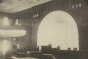 ![]() ![]() ![]() 中央部分の塔屋、車寄 ![]() ![]() ![]() ![]() 塔屋 ![]() 塔屋、毛筆タレット(上部)、正方形をした凸凹部分、バルコーの半円形アーチ型の窓、舟肘木など ![]() 塔屋 ![]() 塔屋 ![]() ![]() ![]() ![]() ![]() ![]() 西側 ![]() 西側 ![]() 西側 ![]() 西側 ![]() ![]() ![]() ![]() 【参照】修復工事完成の俯瞰図、工事説明板より ![]() 【参照】建設当初の議会場、正面壁面の半円アーチ、工事説明板より ![]() 【参照】建設当初の政庁の間、工事説明板より ![]() 【参照】建設当初の政庁の間、工事説明板より ![]() 【参照】復元された政庁の間、工事説明板より |