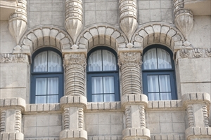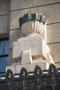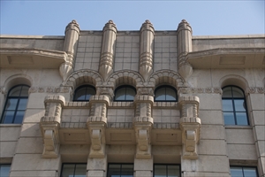 寺町通御池上ルに京都市庁舎(きょうと-しちょう-しゃ)本庁舎は建つ。市庁舎としては3代目になる。 意匠は主に京都市営繕課職員・中野進一が当たり、顧問・武田五一が監修を行ったという。 ◆歴史年表 近代、1873年、4月、現在地(河原町御池上ル)に、京都府により旧府栽培試験場が建てられた。 1894年、3月、試験場は京都市に払下げられている。6月、試験場跡に京都市会議事堂が着工になる。 1895年、3月、議事堂が完成し竣工式が行われている。 1898年、10月、議事堂内に庁舎が開庁された。(初代庁舎) 1916年、5月、2代庁舎工事が着工された。 1917年、4月、初代庁舎西側に市庁舎の増改築が完成し、2代庁舎として使用される。(2代庁舎) 1925年、3月、2代庁舎の解体が行われた。 1926年、7月、3代庁舎本庁舎の第1期工事・東館が上棟された。 1927年、4月、第1期工事が竣工する。 1930年、10月、2代・市庁舎を改築増築し、第2期工事・本庁舎西館が起工される。 1931年、8月、本庁舎全体が完成した。(3代庁舎) 現代、2017年、6月、本庁舎の耐震改修工事が始まる。 2021年、8月末、耐震改修工事が終了する。 ◆中野 進一 近代の建築家・中野 進一(なかの-しんいち、1900-1945)。男性。静岡県の生まれ。浜松中学、第八高等学校を経て、1921年、京都帝国大学建築学科に入学し、武田五一に学ぶ。1925年、3月、帝大卒業後、鉄道省に雇として入る。11月、京都市建築課(1927年より営繕課に改称)の嘱託職員になる。1927年、技師になった。京都市庁舎本庁舎の意匠設計を担当した。 同年、円山公園音楽堂でも設計を担当した。1928年、設備部設備課に勤務し、大礼奉祝事務局委員に任じられる。1929年、病により京都市を退職する。神戸市に移り、設計事務所を自営した。44歳。 ◆武田 五一 近代の建築家・建築学者・武田 五一(たけだ-ごいち、1872-1938)。男性。備後福山(広島県)の生まれ。父・備後福山藩士・司法官・平之助(直行)、母・八重の第5子。父の赴任に従い、神戸、姫路、岐阜、高知に住む。1888年、京都第三高等中学校補充科に入学した。1894年、京都第三高等中学校本科を卒業し、京都帝国大学工科大学造家学科に入学する。1897年、帝国大学(東京帝国大学)造家学科(建築学科)を首席卒業し、同大学院に進学した。1899年、大学院中退後、東京帝大助教授に任じられる。東京高等師範学校講師嘱託、東京美術学校教官になった。1901年-1903年、文部省より命ぜられ欧州留学する。ロンドン・カムデン美術学校で学び、各地を巡る。アール・ヌーボー、セセッションなどを体験する。1903年、帰国後、京都高等工芸学校(現・京都工芸繊維大学)図案科教授になる。1904年、京都府技師を兼任し、平等院鳳凰堂・鹿苑寺金閣の保存に関わる。1907年、東京・福島行信邸で、日本初のウィーン・セセッションの様式を試みた。アール・ヌーボーの造形を紹介する。1908年、大蔵省臨時建築部技師を兼任し、国会議事堂建築のために欧米視察した。1912年、パナマ太平洋万国博覧会事務取扱嘱託になる。1915年、工学博士学位を取得する。勲四等瑞宝章を受賞した。1916年、法隆寺壁画保存会委員になる。1917年、片岡安らと「関西建築協会」を設立する。1918年、名古屋高等工業学校(現・名古屋工業大学)校長に転任した。1920年-1932年、京都帝国大学建築学科創立に伴い教授になる。1925年、大蔵省営繕管財局技師を兼任した。1929年-1931年、京都帝国大学営繕課長事務取扱として学内建築物の造営に関わる。1931年、欧米出張し、19カ国を訪れた。1934年以来、法隆寺大修理工事事務所長を務める。65歳。 「関西建築界の父」といわれた。奈良・京都の古社寺保存修復、橋梁、博覧会場、公園、記念碑、都市計画、街路施設、家具意匠、染色なども手掛けた。主な作品として、旧日本勧業銀行本店(1899) 、日本初のセセッション建築とされる東京・福島邸(1907)、京都府立図書館(1909)、京都・円山公園(1912)、京都・同志社女子大学ジェームス館 (1913) 、京都・旧松風嘉定邸 (現・五龍閣、1914)、山口県庁舎・県会議事堂(1916) 、大阪・瀧安寺鳳凰閣(1917) 、兵庫・清水寺根本中堂・大講堂・本坊・客殿(1917) 、東京・旧村井吉兵衛邸(現・延暦寺大書院、1919) 、 兵庫・清水寺鐘楼 (1919)、兵庫・光明寺根本本堂(1925) 、 和歌山・高野山大学図書館 (1928)、代表作の東方文化学院京都研究所(1930)、京都・同志社女子大学栄光館(1932) 、鳥取・三朝大橋(1934年) など多数。葵橋、賀茂大橋なども設計した。 ◆初代・2代庁舎 近代、1889年に京都市は発足した。当初は特別市政が敷かれ、京都府庁内で行政事務が行われていた。1898年に特別市政が廃止され、市役所開庁の建設が必要になる。 ◈現在地の市庁舎敷地(河原町御池上ル)には、1873年4月に京都府により旧府栽培試験場が建てられた。1894年3月に京都市に払下げられている。 ◈1894年6月15日に、旧府栽培試験場跡に京都市会議事堂が着工になる。1895年3月25日に竣工式が行われている。1898年10月25日に、議事堂内に初代市庁舎として開庁された。 和風建築、木