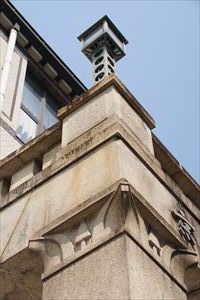 今出川大宮東入ル北側の京都市考古資料館(きょうとし-こうこ-しりょうかん)は、財団法人京都市埋蔵文化財研究所が管理・運営を行っている。 建物は、かつて西陣織物館として建てられ、近代の建築家・本野精吾が設計している。日本で最も早い段階のモダニズム建築作品になった。 ◆歴史年表 近代、1914年、6月、西陣織物同業組合は現在地で上棟式を行う。10月、竣工し西陣織の陳列館として「西陣織物館」と命名された。 1915年、10月、開館式が行われる。 現代、1976年、新たに「西陣織物会館」(上京区堀川通大宮東入ル)として移転・新築になった。現在地の旧西陣織物館は京都市に寄贈される。 1979年、11月、現在地に「京都市考古資料館」が開館する。 1984年、 6月、建物は京都市登録有形文化財に登録されている。 ◆本野 精吾 近代の建築家・本野 精吾(もとの-せいご、1882-1944)。男性。東京の生まれ。読売新聞社創業者・2代目社長・本野盛亨の5男。暁星中学校、第一高等学校を経て、1903年、東京帝国大学工科大学建築学科に入学した。1906年、大学卒業後、三菱合資会社地所部(現・三菱地所)の技師になる。三菱12号館の設計に関わった。1908年-1943年、京都高等工芸学校(現・京都工芸繊維大学の前身)教授・武田五一の招きにより、同校図案科教授になる。1909年-1911年、ヨーロッパに留学し、ドイツ人建築家・ベーレンス(1868-1940,Peter Behrens)設計のAEGタービン工場(1909)、モダニズム建築に影響を受けて帰国した。1914年、西陣織物館を初設計する。その後、ドイツに留学した。1918年、京都高等工芸学校の学科長になる。1927年、京都で結成された「日本インターナショナル建築会」(同人は上野伊三郎、石本喜久治、中尾保、伊藤正文、新名種夫)に参加する。関西の国際様式の中心人物になる。武田五一はその作風を批判している。1944年、従三位勲二等を叙された。61歳。 機能性・合理主義を標榜し、日本のモダニズム建築の先駆として知られた。新構造体(鉄骨・鉄筋コンクリート)を使用し、意匠は抽象的な面・線を追究した。川崎造船デザイン顧問になり、船室、家具、舞台などの設計もした。エスペランティストとしても知られ、ローマ字普及、広告印刷物にも関わった。絵も描き、京都での西洋音楽普及にも尽力した。 主な作品に、西陣織物館(現・京都市考古資料館、1914) 、京都高等工芸学校自習室(1924)、自邸(1924)、旧鶴巻邸(現・栗原眞純邸 、1929)、旧京都高等工芸学校本館(現・京都工芸繊維大学3号館、1930)、フルーツパーラ八百文(1931)、橘丸などの客船の船内装飾 も手掛ける。 ◆建築 近代、1914年に西陣織物館は当初、西陣織物同業組合により西陣織の陳列館として建てられた。設計は本野精吾であり初設計だった。日本で最も早い段階のモダニズム建築作品になる。1984年に京都市登録有形文化財に登録されている。 鉄筋コンクリート造の柱梁構造に、煉瓦造の壁構造を用いた混構造になっている。外観は、全体的にはモダニズムの影響を受けている。白いタイル貼の単純な箱型であり、壁に装飾、凹凸、コーナーストーンも廃されている。平板的な意匠は、当時としては斬新だった。円柱のあるポーチ(入口の屋根付の両側面の開いた部分)などには伝統様式も残されている。緑色の屋根が載る。階段室のサッシュは当時のものになる。当時の人々の印象としては、「マッチ箱のような建物」との評もあったという。 内部は壁面に円柱、コーニス(水平の突起部)による分節がない。正円、正方形の装飾がある。1階・2階室は展示などに用い、構造補強のため室内意匠はない。3階の貴賓室は幾何学的な意匠で、壁面は西陣織のクロス(壁紙)で飾られている。 鉄筋コンクリート造の柱梁構造、煉瓦造の壁構造を用いた混構造、3階建。 1979年に建物補強・改修が行われている。 ◆西陣織物館・考古資料館 近代、1913年3月に西陣織物同業組合は、陳列場・事務所として現在地を用地として買収した。8月に地鎮祭、11月に礎定式が催されている。1914年6月に上棟式を行う。10月に竣工し「西陣織物館」と命名された。1915年10月に開館式が行われている。 陳列会では、織物、美術工芸品の展示、展示即売会、図案作家の作品展覧会も催されていた。1917年には年間入場者は2万人を超える。1924年には3万7609人あった。 1976年に、新たに「西陣織物会館」(上京区堀川通大宮東入ル)として移転・新築になる。現在地の旧西陣織物館は京都市に寄贈された。1979年11月に「京都市考古資料館」が開館した。 ❊原則として年号は西暦を、近代以前の月日は旧暦を使用しています。 ❊参考文献・資料 『京都大事典』、『京都の洋館』、『関西の近代建築』、『建築家 本野精吾展』、『京都のモダニズム建築』、ウェブサイト「貴重な文化財建造物を後世に継承していくために-kit news vol.17 2008.3」、『京都市考古資料館と建築家 本野精吾』、ウェブサイト「コトバンク」 ![]() ![]() ![]() ![]() ![]() ![]() ![]() ![]() ![]() |