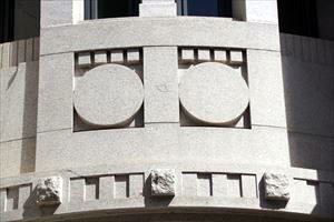 旧不動貯金銀行京都支店(きゅう-ふどうちょきん-ぎんこう-きょうとしてん)は、近代の実業家・牧野元次郎が設立した。 現在はSACRA(さくら)ビルと呼ばれ、テナントビルになっている。 ◆歴史年表 近代、1916年頃、竣工された。 現代、1988年、改装されンテナントのビルになる。 1997年、9月、国の登録有形文化財に登録された。 ◆牧野元次郎 近代の実業家・牧野元次郎(まきの-もとじろう、1874-1943)。千葉県生まれ。旧久留里藩士・牧野治の長男、母はひさ。1886年、印幡郡土室村の北総英漢義塾に入学した。病気のため高等商業学校(後の一橋大学)を中退する。1894年、成田町に創立された成田銀行に勤めた。1900年、不動貯金銀行を設立し、1901年、定期積金「三年貯金」(後の「ニコニコ貯金」の名称で普及し全国規模で最大手の貯蓄銀行になった。1904年、頭取になる。1930年、共立女子薬学専門学校(後の共立薬科大学、慶應義塾大学薬学部)設立に関わる。1941年、相談役になる。「貯金王」などと呼ばれた。70歳。 不動貯金銀行は後に日本貯蓄銀行→協和銀行→埼玉銀行と合併し協和埼玉銀行→あさひ銀行→大和銀行と合併・分割し、りそな銀行・埼玉りそな銀行と変遷した。 ◆建築 旧不動貯金銀行京都支店は、近代、1916年頃に竣工された。設計は不動産貯蓄銀行の関連会社だった日本建築株式会社による。1988年に改装され現在のテンテナントビルになった。 外観は左右対称が保たれている。ルネサンス風(15-16世紀のイタリアで起きた古代ローマ建築を規範とした古典主義建築で、左右対称と調和を重視した)を基調にしている。豊かな装飾が施されている。細部の意匠はセセッション(ゼツェシオン)が見られ、直線的、実用的なものになっている。これは、19世紀末のドイツ・オーストリアなどで起きた芸術革新で、過去の様式から分離し、生活・機能と結びついた新造形芸術であり、分離派とも呼ばれた。1階部分のストライプ模様、正面中央の円形装飾などの幾何学的な意匠も併用されている。南側中央部が正面になり、開口部上部に装飾が施されている。大正期(1912-1926)前期の古典主義を用いた銀行建築として貴重とされている。1階部分は石貼りであり、腰部分はルスティカ仕上げ(石造建築で、壁の表面を滑らかにせず、目地を際だたせ石材面を突出させた技法)になっている。2階部分はタイル貼りになっている。同様に日本建築株式会社が設計した日本生命三条ビルと比較すると、装飾は単純化している。 施工は不明、地上3階地下1階建。1階が煉瓦造、2階・3階が木骨煉瓦造、銅板葺、建築面積232㎡。 ❊原則として年号は西暦を、近代以前の月日は旧暦を使用しています。 ❊参考文献・資料 ウェブサイト「文化庁 文化財データベース」、『京都のモダニズム建築』、『京都の洋館』、『京都モダン建築の発見』、ウェブサイト「銀行変遷史データベース-銀行図書館」、ウェブサイト「コトバンク」 ![]() ![]() ![]() ![]() ![]() ![]() ![]() ![]() ![]() ![]() ![]() |
