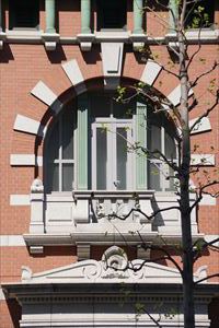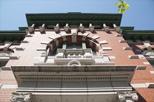 烏丸通三条南西角に、赤煉瓦造の旧第一勧業銀行京都支店(きゅう-だいいち-かんぎょう-ぎんこう-きょうとしてん)が再建されている。 現在はみずほ銀行京都中央支店に名を変えた。設計は近代の辰野葛西建築事務所による。 なお、付近の三条通には、近代の歴史的建造物がまだ複数残されている。 ◆歴史年表 近代、1904年、3月、「第一勧業銀行京都支店」の建物は起工した。 1906年、5月、支店は竣工する。 1919年、南側、西側が増築される。 現代、1997年、三条通周辺は京都市の「界わい景観整備地区」に指定される。同支店は最も重要な景観構成要素の一つになる。 1999年、支店は取り壊される。 2003年、旧支店がレプリカ再建された。 2005年、2月、店舗名は「みずほ銀行京都中央支店」に変更になった。 ◆辰野金吾 江戸時代後期-近代の建築家・教育者・辰野金吾(たつの-きんご、1854-1919) 。男性。旧姓は松倉。唐津(佐賀県)の生まれ。父・唐津藩藩士・姫松倉右衛門の次男。1868年、辰野宗安の養嗣子になる。1873年、工部省工学寮に入学した。イギリス人・建築技師・ジョサイア・コンドル(Josiah Conder,1852-1920)の指導を受ける。1879年、工部大学校(工学寮)造家学科の第1回卒業生として卒業した。1880年、留学のため、ロンドンのコンドルの師・バージェス(William Burges,1827-1881)建築事務所などで建築を研修した。フランス、イタリアにも行く。1883年、帰国し工部省に入る。設計の処女作になった銀行集会所(1885)の設計を行う。1884年、コンドルの後任として、工部大学校教授に就任し、日本建築講座を担当する。1886年、「辰野建築事務所」を設立した。造家学会(現・日本建築学会)創立に参加した。1887年、日本銀行の設計者に決定し渡欧する。1888年、帰国する。1898年、建築学会会長、工科大学長に就任する。1902年、工科大学を退官した。1903年、教え子・葛西萬司と東京・「辰野葛西事務所」を開設した。1905年、片岡安と大阪・「辰野片岡事務所」を開設する。議院建築調査会委員を歴任する。工学博士。66歳。 「日本近代建築の父」といわれた。日本人で洋風建築技術を最初に学ぶ。創成期の日本近代建築を主導した。門弟に伊東忠太、関野貞、大熊喜邦らがいる。主な作品は、工科大学本館(1888) 、日本銀行本店(1896) 、両国国技館(1909)、東京中央停車場(東京駅、1914) などがある。 ◆葛西萬司 江戸時代後期-近代の建築家・葛西萬司(かさい-まんじ、1863-1942)。 男性。盛岡(宮城県)の生まれ。南部藩家老・鴨澤舍の次男、後に南部藩士葛西重雄の養子になる。1890年、 東京帝国大学工科大学造家学科を卒業し、日本銀行技師になる。1903年、 辰野金吾と東京・「辰野葛西設計事務所」を開設する。1915年、 工学博士になった。1919年、 辰野金吾の没後、葛西設計事務所を経営する。1927年、 田中實と「葛西田中建築事務所」を開く。1937年、単独経営になり「葛西建築事務所」に改称する。工手学校(現・工学院大学)造家学科教員を務めた。79歳。 辰野葛西設計事務所の現存作品として、旧盛岡銀行本店本館(現・岩手銀行中ノ橋支店赤レンガ館 )(1911、重文)、 旧中央停車場(現・東京駅)(1914、重文) 、岩手病院診療棟(現・岩手医科大学1号館) (1926)、葛西建築事務所として旧盛岡貯蓄銀行本店(現・盛岡信用金庫本店) (1927 などがある。 ◆建築 第一勧業銀行京都支店は、近代、1904年3月に着工し、1906年5月に竣工した。設計は辰野葛西建築事務所(辰野金吾・葛西萬司)による。1919年に清水組により、南側、西側の増築が行われた。その後、1999年に取り壊される。2003年に、旧支店のほぼ同様の外観でレプリカ再建(イメージ復元)されている。 第一勧業銀行京都支店は、東京海上火災本社屋と並び、辰野葛西建築事務所の第1作だった。辰野の現存作品中で、日本銀行本店(1896)、日本銀行大阪支店(1903)に次ぎ3番目に古い作品になる。 東面して建つ。外観は、英国のヴィクトリア様式による赤煉瓦を露出させた。フリー・クラシック(辰野式)と呼ばれている。辰野は、旧日本銀行京都支店(現・京都府京都文化博物館、1906)で、この様式を試みている。フリー・クラシックは、19世紀後半に英国で流行している。細部は古典系様式、骨格はゴシック的になる。赤煉瓦を露出させ、白い石材を帯石・隅石として用い、屋根には高屋根、小塔を載せた。明治30年代(1897-1906)後半-大正期(1912-1926)半まで、辰野により百数十件が建てられた。近代建築史上の最も代表的意匠であり、その起点の一つに位置付けられる。 外壁は煉瓦3枚積で、壁面は化粧煉瓦積、丹波産花崗岩を随所に用いる。屋根はマンサード屋根(腰折れ屋根、切妻屋根の変形で、屋根の勾配が上部が緩く下部が急な2段もの)で、かつては上部は銅板葺、下部はスレート葺だった。屋根にドーマー窓(垂直面の採光窓)がある。2階窓はアーチ形になる。 1919年に清水組技師長・田辺淳吉(1879-1926)の設計、清水組施工により、南側に3ベイ(柱間・梁間)分、西側に4ベイ分の増築、内部改造を行なった。さらに戦後にも、
