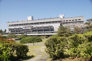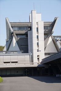 洛北の国立京都国際会館(こくりつ-きょうと-こくさいかいかん)は、日本で最初の国立の会議施設になる。運営は、公益財団法人国立京都国際会館による。会館では、過去に重要な国際会議が数多く開催されている。 設計は近現代の建築家・大谷幸夫による。 ◆歴史年表 現代、1963年、国が主催し公開懸賞競技設計(コンペティション)で、建築家・大谷幸夫の応募作品が最優秀賞を受賞した。 1963-1966年、第1期(総会議場など)の新築工事が行われる。 1966年、竣工した。 1967年、会館本館は日本建設業連合会の「BCS賞」を受賞した。 1969年-1971 年、第2期(プレスセンターなど)の増築が行われた。 1982年-1985年、第3期(イベントホール・ロッジ)の増築が行われた。 1988年、展示棟で「BCS賞」を受賞する。 1993年、ロングライフビル推進協会の「BELCA賞」を受賞した。 1996年-1998年、第4期(ANNEX棟・地下鉄連絡通路)の増築が行われる。 1998年、建設省(現・国土交通省)の「公共建築百選」に選定される。 1999年、DOCOMOMO Japanの「日本の近代建築20選」に選定され、 2000年-2001年、第5期(外構整備工事・歩道橋・歩廊)増築が行われる。2000年に日本音響家協会の「優良ホール100選」に選定されている。 2003年、9月、「DOCOMOMO JAPAN選定 日本におけるモダン・ムーブメントの建築」に引き継がれた。 2018年、ニューホールが建てられた。 ◆大谷幸夫 近現代の建築家・大谷幸夫(おおたに-さちお、1924-2013)。東京の生まれ。1946年、東京大学第一工学部建築学科を卒業し、大学院特別研究生(旧丹下健三研究室)に入る。1951年、同大学院を修了した。引き続き丹下の下で研修し、広島平和記念公園・記念館、旧東京都庁舎などの設計に参加した。1956年、建築家の運動体「五期会」の設立に参加し、中心的な存在になる。1960年、丹下より独立し、自宅で麹町計画を立案する。1961年、設計連合を設立した。1963年、国立京都国際会館のコンペで最優秀賞を獲得した。1964年-1984年、東京大学工学部都市工学科助教授に就任し、都市設計論、都市設計演習を担当した。 1967年、大谷研究室が発足する。1968年、アメリカ合衆国建築家協会の「汎太平洋建築賞」を受賞した。1971年、東京大学工学部都市工学科助教授に就任した。1973年-1987年、東北大学工学部講師を兼任し、建築計画論を担当する。1982年-1987年、神戸大学大学院自然科学研究科講師兼任し、都市設計論を担当した。1983年、金沢工業大学の一連の作品により「建築学会賞」を受賞した。1983年-1984年、千葉大学工学部建築学科教授兼任で、居住学・居住学特論を担当する。 1989年、千葉大学を定年退官し、株式会社「大谷研究室」代表になる。1997年、金沢工大の一連の建築で「日本建築学会大賞」を受賞した。「都市政策を考える会」代表をつとめた。著『空地の思想』(1979)、『大谷幸夫建築・都市論集』(1986)など。88歳。 丹下の下で広島平和記念公園・平和記念資料館(1955)、東京都庁舎(1957)などの設計に関与した。主な作品は東京都児童会館(1961)、天照皇大神宮教本部道場(1964-)、国立京都国際会館(1966-)、金沢工業大学本館(1969)、沖縄コンベンションセンター(1987)、千葉市美術館・中央区役所(1994)など。受賞も多数。 ◆剣持勇 近現代のインテリアデザイナー・剣持勇(けんもち-いさむ、1912- 1971)。東京府で生まれる。1932年、東京高等工芸学校木材工芸科(現・千葉大学工学部デザイン学科)を卒業し、商工省(現・経済産業省)工芸指導所に入る。来日中の建築家・ブルーノ・タウトに師事した。1952年、プロダクトデザイナー・渡辺力、インダストリアルデザイナー・柳宗理と「日本インダストリアルデザイナー協会」を結成する。1955年、「剣持勇デザイン研究所」を設立する。1958年、ブラッセル万国博で建築家・前川国男らと金賞を受賞した。1964年、代表作の藤家具のラウンジチェア「YMK長岡」は、ニューヨーク近代美術館の「20世紀デザインコレクション」に選定された。1971年、日本航空ボーイング747型機インテリアデザインは、「日本インテリアデザイナー協会協会賞」を受賞する。ほか受賞は多数ある。自死した。59歳。 作品・活動は、庁舎、会議場、企業オフィス、公共交通施設空間、ホテル、店舗・ショウルーム、乗り物、家具、プロダクト、サイン、研究活動など多岐にわたり多数の作品がある。1966年、国立京都国際会館の家具設計を行っている。 ◆建築 国立京都国際会館の設計は大谷幸夫による。1963年の公開懸賞競技設計(コンペティション)で、195点の応募作品の中から最優秀賞に選ばれ、出世作になった。戦後の3大コンペ(ほかに東京・国立劇場、最高裁判所)の一つになる。1966年に竣工する。その後も、増築が続けられている。 建物は、周辺の自然風景(比叡山、宝ヶ池)との調和が重視された。日本古来の合掌造と現代建築が融合している。ブルータリズム(1950年代イギリスでのコンクリート打放しによる粗々しい表現)の典型とされている。コンクリート打放しであり、基本的な断面は台形(三角形)・「A」字形