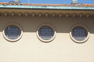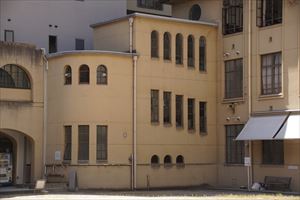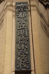 室町通蛸薬師下ルに元明倫小学校(もと-めいりん-しょうがっこう)はある。 現在は芸術の総合的な振興のための、京都芸術センターとして建物は再利用されている。 ◆歴史年表 江戸時代末、1782年、春、この地に、石門心学の心学道場「明倫舎」(河原町三条)が開設される。心学者・手島和庵(1747-1791)により移された。(「明倫舎文書」) 近代、1869年、9月16日/11月、「下京三番組小学校」(錦小路通室町東入ル占出山町の一画)が創設される。当初は、旧明倫舎の建物を校舎にあてた。 1870年、昭和の御大礼を記念し、校舎改築が決定する。学区民からの寄付を募る。 1872年、「下京区第三小学校」に改称する。 1875年 、山伏山町の土地を購入し、校地を拡張する。室町通に面して校門が移される。心学講舎「明倫舎」に因み「明倫小学校」に改称される。 1887年、「下京区第三尋常小学校」に改称した。 1892年 、「京都市明倫尋常小学校」に改称する。 明治期(1868-1912)終わり/1908年、大規模な木造校舎群が建てられていた。 1927年、現在の校地を得る。 1928年、昭和天皇御大典事業により校舎改築が決議される。 1929年 、校舎の大改築工事が始まる。 1931年 、10月10日、現在の建物が建てられた。新校舎竣工祝賀式を行う。 1937年、「明倫幼稚園」を併設した。 1941年 、「京都市明倫国民学校」と改称する。 1945年、3月29日、太平洋戦争激化により、府下何鹿(いかるが)郡小畑村(現・綾部市)へ学童疎開する。10月15日、引揚した。 現代、1980年 、「明倫資料館」が完成した。 1993年、3月31日、「明倫小学校」は124年の歴史をもって閉校になる。 1995年、3月まで、高倉西小学校として活用されている。 1995年-1998年、「芸術祭典・京」の芸術共感部門の会場として利用される。 1999年、1月、京都芸術センター整備工事が着工になる。 2000年、1月、京都芸術センターが竣工した。4月1日、京都芸術センターが開設される。 2008年、7月、元明倫小学校(現・京都芸術センター)の建物は、国の有形文化財に登録される。 ◆手島 和庵 江戸時代中期-後期の心学者・手島 和庵(てしま/てじま-わあん、1747-1791)。父・手島堵庵。1762年、家督を継いだ。「五楽舎」、「明倫舎」の舎主を務めた。指導者として組織化し、心学教化活動を支えた。44歳。 明倫舎を鴨東三条橋北から錦小路烏丸西入ル占出町に移している。 ◆建築 近代、1929年に校舎の大改築工事が始まる。1931年に竣工した。現代、1999年に当時の建物を残して改修されている。設計は京都市営繕課による。室町通に面して本館、その背後(東側)に南校舎、北校舎、その間に運動場が配置された。 当時は各番組が競って豪華な校舎を建てていた。番組小学校の中でも、最も近代的、充実した建物として知られた。学区内の山鉾町町衆の高い美意識、寄付を基にした豊富な資金力を背景として建てられている。寄付金40万円に積立金を加えた58万円があてられた。当時としては、最先端の鉄骨コンクリート造建築だった。 ◈「正門」(国・登録有形文化財)は、室町通に西面している。 門柱は断面八角形であり、各角に柱形を付ける。アール・デコ(1910年代-1930年代に、フランスを中心に流行した美術工芸の様式、単純・直線的な意匠)、また、セセッション風(19世紀末、ドイツ・オーストリアでの新造形芸術創造をめざした。分離派)の造形ともいう。頂部はドーム形になる。門柱両側にさらに、同形のやや小振りの脇門が立つ。 鉄筋コンクリート造門柱2基、間口2.9m、両側通用門付。 ◈「塀」(国・登録有形文化財)は、南北方向に建てられ、室町通に接している。親柱も門柱と同意匠、同色であり、全体としての一体感がある。 鉄筋コンクリート造、延長25m。 ◈「本館(現・西館)」(国・登録有形文化財)は、門を入った左手にあり、東西方向に長い。玄関は南面しステンドグラスが嵌められている。切妻屋根が載る。パラペット(外周部の先端に設けられた低い立ち上がり部分の壁)のスペイン瓦、西側妻2階にバルコニーがある。軒裏には肘木状の和風意匠が見られる。外壁は人造石の洗い出しで赤みを帯びたクリーム色をしている。軒廻りに庇を出している。屋根瓦はオレンジ色、雨樋は緑青色が配されている。 1階の西半分に事務室、学務委員室、校長室、職員室などがあった。1階の東半分に屋内体操場、2階の西半分に書院造の和風大広間(78畳敷)があり格天井になっている。2階の東半は旧講堂になる。 鉄筋コンクリート造、2階地下1階建、桟瓦屋、建築面積661㎡。 ◈「南校舎(現・南館)」(国・登録有形文化財)は、本館の南面東端から東に繋がる。西側に半円アーチの入口がある。北面東寄りに旧運動場への出入口がある。西端入口上の塔屋は寄棟屋根であり、横3連の円形窓の意匠が施されている。アール・デコの意匠になる。学区には祇園祭の山鉾町が多くがありり、正面意匠は祇園祭の山鉾を模したといわれている。外壁は人造石の洗い出し、奥部は色モルタル塗り仕上げになる。 北側片廊下には教室が並び、各教