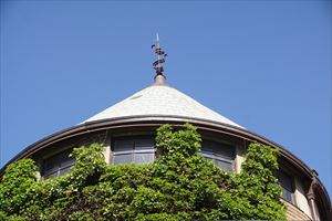 北西端、円筒形塔屋の窓