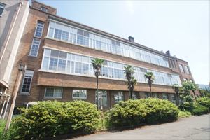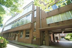 京都工芸繊維大学の西部構内に、大学前身の一つになる旧京都高等工芸学校本館(きゅう-きょうと-こうとう-こうげいがっこう-ほんかん)が残されている。 近代のモダニズム建築の先駆といわれた建築家・本野精吾が設計した。 ◆歴史年表 近代、1902年、京都高等工芸高校(左京区吉田下阿達町、現在の京都大学吉田キャンパス内)が開校した。 1930年、東大路通拡幅のために、松ヶ崎へ移転する。本館・講堂が竣工される。 1931年、ほかの建物が竣工した。 現代、1949年、京都高等工芸学校と京都繊維専門学校が統合され、京都工芸繊維大学が発足する。 2008年、3月、旧京都高等工芸高校の本館・講堂などは国の登録有形文化財に選出された。 ◆本野精吾 近代の建築家・本野精吾(もとの-せいご、1882-1944)。東京生まれ。読売新聞社創業者・2代目社長・本野盛亨の5男。暁星中学校、第一高等学校を経て、1903年、東京帝国大学工科大学建築学科に入学した。1906年、大学卒業後、三菱合資会社地所部(現・三菱地所)の技師になる。三菱12号館の設計に関わった。1908年-1943年、京都高等工芸学校(現・京都工芸繊維大学の前身)教授・武田五一の招きにより、同校図案科教授になる。1909年-1911年、ヨーロッパに留学し、ドイツ人建築家・ベーレンス(1868-1940,Peter Behrens)設計のAEGタービン工場(1909)、モダニズム建築に影響を受けて帰国した。1914年、西陣織物館を初設計する。その後、ドイツに留学した。1918年、京都高等工芸学校の学科長になる。1927年、京都で結成された「日本インターナショナル建築会」(同人は上野伊三郎、石本喜久治、中尾保、伊藤正文、新名種夫)に参加する。関西の国際様式の中心人物になる。武田五一はその作風を批判している。1944年、従三位勲二等を叙された。61歳。 機能性・合理主義を標榜し、日本のモダニズム建築の先駆として知られた。新構造体(鉄骨・鉄筋コンクリート)を使用し、意匠は抽象的な面・線を追究した。川崎造船デザイン顧問になり、船室、家具、舞台などの設計もした。エスペランティストとしても知られ、ローマ字普及、広告印刷物にも関わった。絵も描き、京都での西洋音楽普及にも尽力した。 主な作品に、西陣織物館(現・京都市考古資料館、1914) 、京都高等工芸学校自習室(1924)、自邸(1924)、旧鶴巻邸(現・栗原眞純邸 、1929)、旧京都高等工芸学校本館(現・京都工芸繊維大学3号館、1930)、フルーツパーラ八百文(1931)、橘丸などの客船の船内装飾 も手掛ける。 ◆建築 旧京都高等工芸学校本館・講堂(現・3号館)、倉庫、自動車庫(現・プラザKIT)、正門・門衛所(現・東門)が建てられている。1930年-1931年に竣工した。いずれも、基本設計を担当したのは京都高等工芸学校図案科教授・本野精吾による。文部省営繕課が実施設計を行う。2008年3月、国の登録有形文化財に選出された。 ◈「本館」(登録有形文化財)は、西部構内南東隅に、東面して建てられている。1930年に竣工した。2003年に改修されている。 平面は背面(西側)に両翼を伸ばし、E字形になっている。正面玄関、ポーチ(入口の屋根付の両側面の開いた部分)は天井がガラス張りになっている。扉はアール・デコ(1910年代-1930年代にフランスを中心に流行した美術工芸の様式、単純・直線的な意匠)になる。正面奥(西側)中央に、講堂部を突き出している。 外観は、モダニズム意匠に特徴がある。外壁は、茶色のスクラッチタイル貼の全面貼りになる。当初は打ち放しコンクリートの予定だった。北面・南面の2、3階は薄く張出され連続窓になっている。スチールサッシの横長窓が廻された。窓ガラスの組子には、アール・デコ様の装飾が施されている。内部は前面玄関に入口ホールがある。右側に初代校長・中沢岩太、左側には2代目校長・鶴巻鶴一の胸像が置かれている、前面に管理部門、両翼部分に教室、1階に学部長室などがあった。 鉄筋コンクリート造3階建、陸屋根、建築面積2251㎡。 なお、初期案は、1927年の本野らの日本インターナショナル建築会による第1回建築展覧会に出品された「或る学校建築への草案」になる。草案では正面にも横長連続のガラス窓が巡らされていた。 ◈「講堂」は、本館の背面(西側)中央にあり、1930年に竣工している。1964年に屋上に1階部分を増築した。2003年には内部を全面改装した。 本館とは渡り廊下(長さ4m)で繋がる。内部は二層吹き抜けで、プロセニアム・アーチ(劇場の舞台と客席を区切る額縁状の構造物)を備えていた。 ◈「倉庫」(登録有形文化財)は、本館の南翼の南にある。北面している。1931年に竣工した。1964年に移築されている。 スクラッチタイル貼で、北東隅部に階段、屋上に塔屋がある。北面と南面に柱形を現し、壁面頂部にコーニス(外壁上端、屋根庇の下、天井と壁の境などに置かれる水平の細長い突出部)を廻す。窓には内側に鉄扉を付ける。 正面10m、奥行8m。鉄筋コンクリート造2階建、陸屋根造、建築面積80㎡。 ◈「自動車庫」(登録有形文化財)は、本館の北東方、中央西門の南にある。