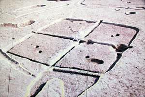 北辺部中央東寄りで竪穴住居状遺構14基があり、柱穴、壁溝は見つからなかった。炉跡らしきものは確認された。東南部では 、2つの竪穴住居らしき遺構が見つかった。中央南の竪穴住居は、平面が少し歪な方形で、浅い落ち込み状(深さ10-20㎝)だった