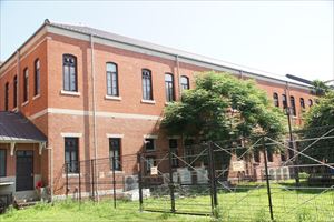京都大学北部構内に赤煉瓦造の旧理学部物理学・数学教室(きゅう-りがくぶ-ぶつりがく・すうがくきょうしつ)がある。現在は学生部として利用されている。 設計・施工は文部省による。 ◆歴史年表 近代、1898年、旧理学部物理学・数学教室の1階車寄から北側が竣工した。 1909年、1階の南側半分が竣工する。 1914年、2階の前面が増築される。 1922年、2階の北側が増築された。 ◆建築 旧理学部物理学・数学教室の設計・施工は文部省による。工事が4期にわたっている。当初は、近代、1898年に1階車寄から北側が竣工した。その後、1909年に1階の南側半分が竣工する。さらに、1914年に2階前面部分が増築され、1922年に2階北側部分が増築されて完成した。このため、すでに1889年に竣工していた西隣の旧三高物理学実験室と建物は一体化している。 工期が4期に渡るため装飾、窓形状、煉瓦などに相違が生じている。明治期、1898年、1909年建設の1階部分は、旧三高物理学実験室を設計した山口半六、久留正道による工法を踏襲している。白いまぐさ石(楣石、窓・出入り口の上部に架け渡した横材)は簡素であり窓上部を支えている。大正期、1914年、1922年の工事では、まぐさ石がアーチに変わり、キーストーン(アーチの頂部にはめる要石、くさび石)も、より装飾的になった。煉瓦は長手積みだけの段、小口積みの段だけの段と一段おきに積まれている。 設計・施工は文部省京都出張所による。煉瓦造2階建、瓦葺。 *内部は通常非公開 ❊原則として年号は西暦を、近代以前の月日は旧暦を使用しています。 ❊参考文献・資料 『京都市の近代化遺産 近代建築編』、ウェブサイト「コトバンク」 ![]() ![]() ![]() ![]() ![]() ![]() |