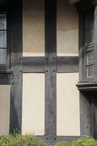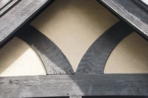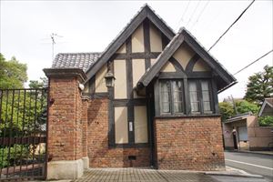 北野東紅梅町(きたの-ひがしこうばい-ちょう)に、聖ヨゼフ修道院門の家(せいよぜふ-しゅうどういん-もんのいえ)がある。かつて住友家衣笠別邸の門衛所だった。 設計は、近代の建築家・多久仁輔によるといわれている。 ◆歴史年表 近代、1919年、住友家衣笠別邸は上棟される。 1920年、竣工した。後に荒廃する。 太平洋戦争(1941-1945)中、「衣笠苗園」と呼ばれていた。 現代、1971年、衣笠邸の住宅部分は取り壊される。跡地に、聖ヨゼフ修道院の施設が建てられた。残された旧門衛所は以後、「門の家」と呼ばれる。 1998年、7月、国の登録有形文化財に指定された。 ◆多久仁輔 近代の建築家・多久仁輔(?-?)。詳細不明。男性。工手学校(現・工学院大学)の出身。住友営繕に入る。1920年、住友家衣笠別邸の門衛所、門を設計したという。 ◆住友友純 江戸時代後期-近代の実業家・住友友純(すみとも-ともいと、1865 -1926)。男性。幼名は隆麿、号は春翠。父・徳大寺公純(第113代・東山天皇の5世孫)、母・千世浦斐子(末弘氏)の第6子。兄・徳大寺実則、西園寺公望、中院通規ら。洛北の徳大寺家別業「清風館」で生まれた。父より『日本書紀』、『詩経』などを学ぶ。1883年、父が没する。1884年、東京・徳大寺邸に移り、学習院に入学した。1885年、学習院中学科生、1887年、法律選科に入る。1892年、14代当主・住友登久の長女・満寿の婿として養嗣子になる。学習院は退学した。以来、住友本邸(中央区)に住む。1893年、住友15代を継ぎ、住友吉左衛門友純と称した。家業を継承し、別子銅山(愛媛県)、銅貿易(神戸市)、再製茶・樟脳製造業、生糸業(滋賀県)を営む、1895年、住友銀行(大阪中之島)を開業し、重役になる。1896年、家法を改正した。1897年、欧米を歴訪する。1900年、総理事になった。1906年、勲二等瑞宝章を受章した。別邸(東京)を設ける。1908年、本店・銀行本店(東区)を移し、1909年、住友本店を住友総本店にした。1911年、伸銅場中之島分工場を廃し、安治川本工場に合併する。男爵を授けられる。住友電線製造業を分離し、住友電線製造所を設ける。1912年、銀行を株式会社にする。大阪商工会顧問に就いた。1913年、肥料製造所(愛媛県)、1915年、住友私立職工養成所を設立し、理事になる。1916年、住友洋行を上海、1917年、天津に置く。1918年、東北大学鉄鋼研究所創立費・事業費を寄付した。1919年、理化学研究所監事・評議員に委嘱される。1919年、岸本製鉄所を買収し住友伸銅所尼崎工場とした。大阪北港株式会社を創立する。1920年、住友鋳鋼所を株式会社にする。1921年、住友合資会社を設立し、社長になった。私立大阪住友病院を設立する。1922年、府立大阪図書館を増築完成し、大阪府に寄贈した。1923年、住友ビルディングを設立した。1925年、本邸(兵庫県)を移す。肥料製造所を株式会社にする。住友信託株式会社を設立する。63歳。 茶人であり、中国古銅器類の世界的蒐集家(泉屋博古館コレクシヨン)だった。建築、庭園に造詣深く、 画家・黒田清輝、鹿子木孟郎、浅井忠らに援助した。 ◆建築 近代、1919年に住友家衣笠別邸は上棟される。1920年に竣工した。住友友純が長男・寛一のために建てたという。広大な敷地に純和風の家、庭園があった。寛一が住むことはなく後に荒廃する。太平洋戦争(1941-1945)中には、「衣笠苗園」と呼ばれていた。現代、1971年に、住宅部分は取り壊される。跡地に、聖ヨゼフ修道院の施設が建てられた。現在はゲストハウスとし て使用されている。衣笠邸の遺構は、旧門衛所、旧門だけが残されている。以後、遺構は「門の家」と呼ばれる。1998年7月に、門の家、門は国の登録有形文化財に指定された。 ◈ 旧門衛所は、住友家京都衣笠別邸の跡地内の東側に建つ。外観はほぼ当初の姿を残し、小住宅としても成立している。煉瓦の腰壁とハツリ目(斫り、ノミなどで一部を削る)をつけた木部により構成されている。ハーフティンバー様式(柱・梁・筋違などの骨組みを外に剥き出し、その間にモルタル、煉瓦などを充塡し壁にした西洋木造建築)になる。煉瓦壁部分はイギリス積みで、小口積みと長口積みを交互に段違いに積んでいる。 チューダー・ゴシック様式になる。1485年-1558年のイギリス・チューダー朝時代に様式は興きた。後期ゴシックからルネサンス様式への過渡期にあたる。垂直様式にゴシックの名残り、細部装飾にはルネサンスの影響もある。 木造平屋建、煉瓦壁、瓦葺、建築面積39㎡。 ◈ 門は、近代、1920年に竣工した。門衛所の南隣にあり、門衛所と一体化している。門柱の台座、笠石には御影石を用いている。両袖壁が続いている。袖壁頂部の煉瓦は縦に積んでいる。煉瓦は、各所にハツリ面を見せた煉瓦を挟んでいる。イギリス積みで小口積みと長口積みを交互に段違いに積む。 煉瓦造、両袖壁延べ2.6m附属。 ◆聖ヨゼフ修道会 1643年に、イエズス会士・ジヤン・ピエール・メダイユ師は、フランス中部のサンフロワー市の男子カレッジに送られる。当時のフランスは長期の市民戦