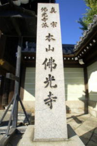 高倉通仏光寺下ル西側に佛光寺(ぶっこう-じ、仏光寺)はある。山号を渋谷山(じゅうこく-さん)という。尼僧・了明(りょうみょう)以来、性差にとらわれない開かれた教団を目指している。 真宗佛光寺派本山。本尊は阿弥陀如来。 ◆歴史年表 創建・変遷の詳細は不明。 鎌倉時代、1212年、越後流罪より帰京した開祖・親鸞は京都に戻り、五条西洞院の花園亭に止宿した。その後、山科東野に草庵を結んだという。その後、弟子・真仏(しんぶつ)に託して関東布教の旅立ったという。(寺伝)。また、親鸞六老僧のひとり源海により、山科に草庵が結ばれたという。(『大谷遺跡録』『親鸞聖人正明伝』)。第84世・順徳天皇(1197-1242)により、厩戸王(うまやどのおう、聖徳太子)にまつわる「興隆正法(こうりゅうしょうぼう)」の勅願を贈られ、当初は「興隆正法寺」、後に略して「興正寺」とした。「正しい法を興し栄えさす」の意がある。 1320年、聖徳太子像の開眼があり、願主・了源は5世・了海の遺骨を頭中に納めたという。(像内文書)。同年、了源により、京都・今比叡汁谷(しるたに、渋谷、現在の京都国立博物館付近)に移転したともいう。 1324年、7世・了源は山科に寺を建立したともいう。覚如は寺名を「興正寺」とした。(『存覚一期記』) 1327年、本尊が盗難に遭う。 1326年、了源は、存覚の指導により絵系図を作り布教を拡大する。 1328年頃/1330年/1320年、了源により、京都・今比叡汁谷に移転したという。第96代・後醍醐天皇は「阿弥陀佛光寺」の寺号を贈り、略して「佛光寺」の寺名になった。了源は、仏光寺派中興の祖とされた。 1331年、焼失している。(『存覚一期記』) 南北朝時代、1334年、再建された。本尊が開眼される。(『存覚一期記』) 1336年、源鸞の病没後、了源の妻・8世・了明が門主を継ぐ。 1352年、延暦寺大衆、祇園社により破却される。(『祇園社家記録』) 室町時代、本願寺を圧倒するほどの隆盛になる。 1465年、比叡山による本願寺破却の際には、妙法院門跡の口入により佛光寺の破却は免れた。(「仏光寺文書」)。10世・唯了以来、得度、受戒は妙法院で行われていた。 1468年、応仁・文明の乱(1467-1477)により焼失している。その後、摂津平野へ一時移転した。以後、寺勢は衰える。 1469年、14世・経豪(きょうごう)が就く。 文明年間(1469-1487)/1481年、経豪は末寺門徒を率い、本願寺の蓮如に帰依し、興正寺を創建した。そのため、佛光寺は弟・経誉が14世に就き再興する。有力末寺48坊中にわずか6坊(中坊、西坊、南坊、角坊、奥坊、新坊)のみが残り、以後衰退する。 安土・桃山時代、1586年、豊臣秀吉の東山渋谷での大仏殿造営に伴い、代替地の竜臥城跡地(現在地、五条坊門高倉)へ移転になる。 1596年、京都大地震により御影堂など諸堂が倒壊・損壊する。(『御影堂奉加帳』) 江戸時代、1603年、御影堂が再建される。6坊が経費を負担し、用材は大坂、近江より運ばれた。(『御影堂作事使日記』) 1606年、慶長の大地震により倒壊している。 1647年、境内は東西93間、南北33間あり、祖師堂15間4面、弥陀堂10間4面あった。(『仏光寺記録』) 1654年、御影堂が再建される。 1788年、天明の大火により御影堂、阿弥陀堂、大善院、唐門、茶所などが類焼した。 1802年、再建される。 1803年、御影堂、阿弥陀堂などの諸堂、堀、長倉の塀なども描かれている。(『二十四輩順拝図絵』) 1830年、旧7月、京都大地震(文政の大地震)で土蔵が崩落し、仏光寺通の通行が止まる。(『甲子夜話』) 1864年、禁門の変(元治の大火)により御影堂、阿弥陀堂が焼失した。 近代、1884年、御影堂が再建された。 1904年、本堂(阿弥陀堂)が再建されている。 現代、2014年、境内に「D&DEPARTMENT KYOTO / d食堂 」が開店した。 ◆了源 鎌倉時代中期-南北朝時代の真宗の僧・了源(りょうげん、1295-1336)。男性。号は空性(くうしょう)。父・興正寺4世・了海の3男。興正寺7世を継ぐ。1324年、了源は山科に一宇を建てた。覚如は興正寺と命名した。1328年頃/1330年/1320年、寺を洛東渋谷に移し、第96代・南朝初代・後醍醐天皇より佛光寺の名を授かり改称した。1336年、布教中に伊賀で殺された。41歳。 日本初で真宗教団を組織した。浄土真宗佛光寺派。佛光寺派中興の祖、真宗教団中興の祖とされる。(佛光寺所伝)。 また、もと武家家人の中間(俗名は金森弥三郎)ともいう。覚如に学び興正寺を建立した。焼失後に再興する。光明本尊、交名帳、絵系図を使った結縁勧進により、西日本での多くの信者を獲得し、真宗教団組織の基礎を築く。(本願寺所伝)。 逸話があり、伊賀(三重県)七里峠で賊に襲われた。死に臨んで賊徒に対し「この者を罪することなかれ、回心の気あり、よく後生を教ゆべし」と諭したという。 ◆源鸞 鎌倉時代後期-南北朝時代の真宗の僧・源鸞 (げんらん、1319-1347) 。詳細不明。男性。父・了源、母・了明の長男。佛光寺8世を継ぐ。1347年、在職13年で病没した。28歳。 ◆了明 鎌倉時代後期-南北朝時代の真宗の尼僧・了明(りょうみょう、1294-1376)。詳細不明。女性