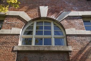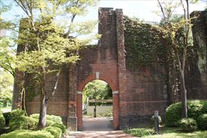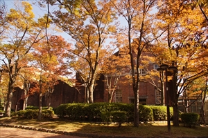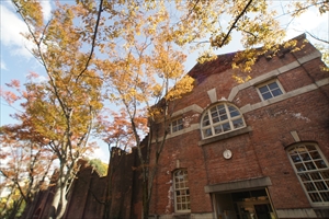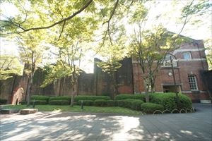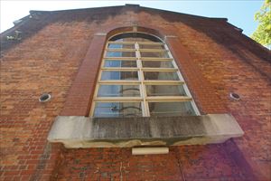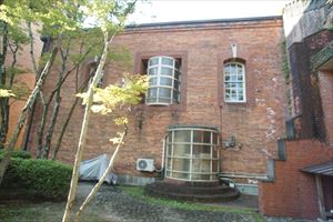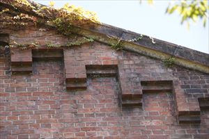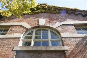 施工は竹中工務店による。煉瓦造、スレートの鋸屋根。