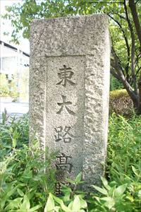 「東大路高野」の石標、高野第3住宅れんが広場 |