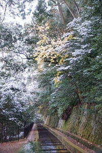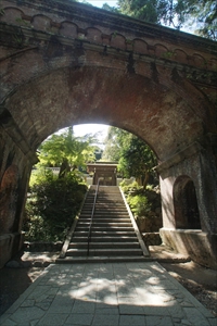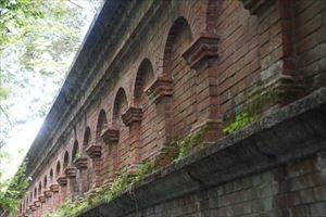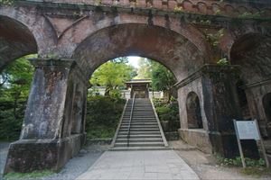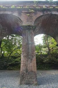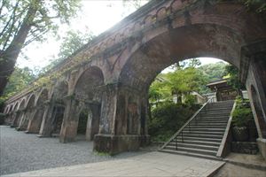 南禅寺境内の南東に水路閣(すいろ-かく)がある。琵琶湖疏水分線の一部であり、京都市が所有している。 近代の土木工学者・田邊朔郎が設計した。 ◆歴史年表 近代、1887年、9月、水路閣は着工される。 1888年、8月/3月、水路閣は竣工した。 現代、1983年、7月、京都市指定史跡に指定される。 1996年、6月、近代化遺産として水路閣、インクラインなどは国の史跡(琵琶湖疏水の一部)に指定された。 2007年-2008年、経済産業省は「近代化産業遺産」として、琶湖疏水関連遺産(水路閣を含む)を認定している。 2025年、5月、水路閣は、琵琶湖疏水施設(24カ所)として国宝(5カ所)の一つに指定された。 ◆田邊 朔郎 近代の土木工学者・田邊 朔郎(たなべ-さくろう、1861-1944)。男性。江戸の生まれ。父・洋式砲術家・田邊孫次郎の長男。1861年、朔郎が9カ月の時、父が病死する。その後、生活困窮する。1868年、戊辰戦争を逃れ武州幸手に移る。1869年、叔父・太一のもとに移る。1871年、太一が外務省任官になりその援助を受けた。1874年、東京に戻り、湯島天神下の「共慣義塾」で英語、漢学、数学を学んだ。1875年、工学寮付属小学校に入学した。1877年、工部大学普通科に入学する。2年後、私費生として工部大学校土木科(東京大学工学部の前身)で学ぶ。1881年以来、京都での実地調査に基づく、実地科卒業論文「琵琶湖疏水工事の計画」を執筆した。土質調査の際に右手を負傷し、左手だけで製図、測量して書いている。叔父の破産後、借金して学業を続け、1883年、工部大学校を卒業した。卒論が京都府知事・北垣国道の目に留まる。請われて京都府疏水准判御用掛として採用され、琵琶湖疏水工事に従事する。1885年、疏水事務所の工事担当として疏水工事が着工した。1886年、疏水事務所の工事部長になる。1887年、工師として全体責任者になった。1888年-1889年、アメリカ合衆国に出張し、水力配置法の取調、ポトマック運河、モリス運河、リン市電気鉄道の調査を行う。1890年、琵琶湖疏水が完成する。国道の長女・しずと結婚した。媒酌人は榎本武揚だった。帝国大学工科大学教授に就任した。1891年、蹴上発電所が完成する。工学博士を授与される。1892年、震災予防調査会委員に任じられる。疏水工事報告書について英国土木学会より、テルフォード・メダルを授与される。1893年、内務省土木会委員に任じられた。1894年、義父・国道の依頼により北海道に出張し、北海道鉄道敷設のための調査を行う。1896年、東京帝大を退任し、北海道庁鉄道部長として官設鉄道の計画・建設にあたる。1897年、臨時北海道鉄道敷設事務調査嘱託に任命された。1898年、北海道鉄道部長に任命され、北海道に移る。1900年、ロシア・シベリア鉄道工事を視察した。アメリカ合衆国を訪ねる。鉄道部長を辞し、創設された京都帝国大学理工科教授に就任した。1901年、京都市土木顧問を兼務し、市の三大事業計画を推進する。1910年、京都帝国大学教授に就任した。京都市名誉顧問になる。1916年-1823年、京都帝国大学工科大学長に就任した。1923年、土木学会会長に就任する。1924年、京大名誉教授になる。勲一等瑞宝章を受章した。1929年、東京・万国工業会議副議長、土木文化会議委員長に推された。1938年、京都市から有功者として表彰された。 米国鉄道協会会委員、アメリカ合衆国土木会会員になる。編纂委員長として『明治工業紙』(全10巻)(1925-1931)に関わる。著『明治以前日本土木史』(1936)は日本土木史の基本文献になっている。81歳。 詩歌、漢詩文、書画、琴を嗜み、工事関連の石片を蒐集した。 墓は大日山墓地にある。顕彰碑(京都市長寄付の黒御影石)には「希英魂永留本市」と刻まれている。傍らに夫人・静子の墓もある。 ◆水路閣 水道橋の水路閣は、田邊朔郎が設計した。近代、1887年9月に着工し、1888年8月/3月に竣工した。当初は、「亀山天皇御陵前桟橋」(「琵琶湖疏水工事図譜」)、「南禅寺桟橋」とも呼ばれていた。水路閣の初出は「日出新聞」(1888年6月7日付)になる。 同時期に完成した海外の水路橋としては、オーストラリア・シドニーの「ブースタウン水路橋」(1888)、オーストリア・ウイーンの「第2高地湧水水道」(1910)の例がある。 水路閣は、琵琶湖疏水の支流の一部であり、疏水分線と呼ばれる水路にあたる。付近では東山が南側に後退しており、地面の高さも起伏に富んでいる。疏水の流れを極力迂回させずに、水位も落とさずに緩い流れを確保するためには、高架式の水道橋を築く必要があった。水路閣の最上部には水路が走り東から西へ流れている。 工事途中から意匠、景観にも配慮された。亀山法皇(第90代、1249-1305)の御廟を迂回するように設計されたともいう。朔郎も設計を考慮している。煉瓦色も石炭で焼き上げると発色が良くないため、火力の強い松の木に変更し焼き上げた。それでも、当初は景観にそぐわないと批判された。啓蒙思想家・教育者・福澤諭吉(1835-1901)も建設に反対したという。ただ、市民の関心は高く、工事中から見物客
