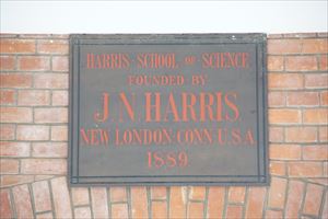 同志社大学今出川キャンパス内にハリス理化学館(はりす-りかがくかん)はある。新島襄と弟子・下村孝太郎の構想により、アメリカ合衆国の実業家・ハリスの寄付を基に、同志社での高等な理科教育機関設立のために建てられた。 近代のイギリスの建築家・ハンセルの設計による。 ◆歴史年表 近代、1890年、ハリス(波理須)理化学校(理工学部の前身)の校舎として竣工した。 1891年、10月、濃尾地震で天文台が破損し、天文台は撤去された。 1896年、ハリス理化学校は廃止される。 現代、1960年、棟札が発見された。 1976年-1977年、外壁保存工事により、内部壁面が鉄筋コンクリートに補強された。 1979年、5月、重要文化財に指定される。 2013年、11月より、「ハリス理化学館同志社ギャラリー」として一部が一般公開されている。 ◆ハンセル 近代のイギリスの建築家・アレクサンダー・ネルソン・ハンセル(Alexander Nelson Hanse,1857-1940)。男性。フランスノルマンディー地方カーンに生まれ。父は牧師・ペーター・ハンセル。父がサマセット教区長に任じられ、父とともにイギリスへ渡る。ウィンチェスターへ移り建築の修業を積む。1888年、日本へ渡り、川口居留地の神学校で英語教師を務めた。1890年、同志社理化学館は日本初の設計になった。同年、神戸外国人居留地で社交クラブユニオンのクラブハウスを設計した。1891年、英国王立建築家協会正会員の資格を獲得する。 第一次世界大戦(1914-1918)で一人息子の戦死後、1920年、中国漢口、モナコへ移り没した。弟子に横山栄吉がいる。83歳。 主な作品は初代神戸倶楽部(1890) 、同志社ハリス理化学館(1890)(重文)、デラカンプ商会(1893)、平安女学院明治館(登録有形文化財)(1895)、門兆鴻邸(旧A.P.ディスレッセン邸)(1895)、シュウエケ邸(旧ハンセル自邸)(1896)、クラブ・コンコルディア(1896)、ドイツ総領事館(1901)、香港上海銀行(1902)、ジャーデン・マセソン商会(旧グッゲンハイム邸)(1912)など。 ◆ハリス 近代のアメリカ合衆国の実業家・ハリス(J.N.Harris,1815-1896)。男性。アメリカ合衆国コネチカット州セイラム市の生まれ。農民の父、13人兄弟の長男。1832年、ハンブルグの雑貨店店員になる。1836年、ニューイングランドの雑貨店店員になる。1838年、雑貨商として独立した。1844年、Harris & Brown社を設立する。1848年、独立し農具・農機具、鉄・鋼鉄輸入業を拡大する。製薬会社J. N. Harris & Co.をオハイオ州シンシナティ市に設立した。1852年、ニューロンドン市のYMCAの設立に努力した。1853年、社名Harris, Ames & Co.と名乗る。1855年、コネティカット州の議員になった。1856年-1862年、ニューロンドン市市長になる。1857年、Harris, Williams & Co.と改称する。1862年、石炭採掘業のHill & Harris Coal Minesを、ペンシルバニア州マホニー市に設立する。1864年、ニューロンドン選出の上院議員を務めた。1865年、New London City Bank頭取を20年以上勤め、同市銀行協会の理事になった。1893年、Mount Hermon School校長を務める。 カナダ・モントリオールにFellowes Medical Manufacturing Co.設立発起人、社長、ガス会社社長などを歴任する。石炭採掘業、鉄道会社、船舶業などを手掛けた。アメリカン・ボード理事であり、ハリス病院(後のローレンス・メモリアル病院)を創設し市民に開放した。福音主義者Dwight L. Moodyの支持者で、Mount Hermon School, Northfield Seminaryの設立に協力した。ニューロンドンのSecond Congregational Churchの役員であり寄付などもしていた。米国での新島襄の養父・A. Hardyは知人であり、アメリカン・ボードから同志社に宣教師として派遣されたD.W.Learnedは同じ教会員だった。81歳。 ◆建築 ハリス理化学館は、近代、1890年にハリス理化学校(理工学部の前身)の校舎として竣工した。新島襄、弟子・下村孝太郎が構想した。新島に共鳴したアメリカ合衆国の実業家・ハリスが10万ドルの基金を拠出した。寄付金は、高等な理科教育機関設立のために充てられた。1979年5月に重要文化財に指定される。2013年11月より、新島襄を資料で紹介する、「ハリス理化学館同志社ギャラリー」として一部一般公開されている。 南面している。建物は2階建の主要部、東北隅の平屋建実験室から成る。当初は実験室北に平屋建の実験室があった。外観基調は、イギリス・ゴシック、イギリスのクイーン・アン・リバイバル様式(アンヌ・クーン[1702-1714]統治時代のイギリスバロック様式、19世紀最後の四半期、20世紀初頭の復興型)を取り入れた意匠になる。切妻造のゲーブル(三角)破風が前後に3カ所ずつ配されている。イギリス積の赤煉瓦壁体に、基礎、開口、切妻部分に花崗岩で白帯を入れる。窓は矩形窓で2連・3連の上下窓になる。 平面はH字型であり、中央部は前後(南北)にやや突出する。南正面は対称形であり、左右に妻部分を見せる。中央に車寄がある。 建築当初は、屋根中央部北寄に八角形平面の天文台が設けられていた。1891年10月の濃尾地震で破損したため天文台は撤去された。この時、背面北流れの屋根にあった煉瓦造煙突も撤去される。1976年-1977年に、