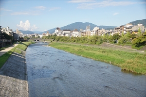 鴨川に架かる松原橋(まつばら-ばし)は、現在の五条大橋の一つ上流に架かる。安土・桃山時代まではこの橋が「五条大橋(五条橋)」と呼ばれていた。橋は、「清水橋」「清水寺橋」、僧侶による勧進(募金)により賄われ「勧進橋」とも呼ばれていた。道の両側に松並木があり「五条松原橋」とも呼ばれた。 牛若丸と弁慶が出会った場所との伝承がある。橋は、清水寺への参詣道に当たり、鳥辺野に至る葬送地への入り口、此岸と彼岸の境界だった。河原は、死者の葬地にもなっていた。橋は、苦集滅路(くずめじ、滑谷 [しるたに越] 、渋谷越)に至る玄関口にもあたっていた。 ◆歴史年表 平安時代、第52代・嵯峨天皇(810-824)の勅命により橋が架けられたともいう。すでに「五条大橋」と呼ばれた。 1139年、「清水橋(五条橋)供養」の記録がある。橋長64間、幅員4間8寸あった。(『百錬抄』『濫觴抄』) 1159年、平治の乱で平家の軍勢は橋板を壊し、楯として防戦した。(『平治物語』) 1188年、大勧進沙弥印蔵は法然の説話を聞き、五条橋の造営勧進の願主になる。清水寺・阿弥陀堂の常行念仏も開く。 平安時代末、石橋が架けられていたという。(『梁塵秘抄』) 鎌倉時代前期、「清水橋」、「清水寺橋」と呼ばれていた。(『明月記』『東大寺要録』) 鎌倉時代、五条橋下には流灌頂(ながれかんじょう、川畔の四方に竹、板塔婆を立て、布をつり広げ、柄杓で通行人に水を注いでもらう。おもに難産死した女性の供養)を行う、乞食僧「いたか」が住していたという。 1228年、風雨洪水により、五条大橋、四条大橋が流された。(『百錬抄』) 1233年、囚人を預かる大番衆が、召人を逃した罰として五条橋修造が課せられていた。 1235年、幕府は京都大番役を怠った西国御家人に、清水寺橋の修理を命じた。(鎌倉幕府法、追加法第69条) 1245年、五条橋の修造費は幕府が負担する。(追加法) 1263年、清水橋(五条橋)、鴨川川防用途を近国御家人に賦課する。(「鎌倉遣文」) 室町時代、1408年、浄財の寄付により修架されている。 1409年、京都の住人・慈恩が浄財を集め、僧・慈鉄が設計し、長さ86丈(260m)、幅24丈(7.3m)の長大な橋を架ける。(『本朝高僧伝』) 1427年、洪水により四条橋、五条橋が落ちた。河原在家といわれる庶民の家が流される。 1441年、洪水により四条橋とともに落ちる。 1461年、「寛正の大飢饉(山城大飢饉)」の際に、飢饉と疫病、戦乱により、8万2000人もの餓死者が出ている。時宗の僧・勧進聖の願阿弥は、四条橋の河原、五条橋の河原、油小路の空き地で1000人以上の餓死者を葬り塚を作った。(『碧山日録』『大乗院寺社雑事記』)。鴨川には遺体が溢れ、川の流れを塞いだという。この後、五条橋で万寿寺の僧による施餓鬼が行なわれた。 1486年、勧進聖・願阿弥は、五条橋中島の堂で亡くなったともいう。(『大乗院寺社雑事記』) 1488年、五条の河原の夏禹廟(燕丹之社、燕丹の廟)について記されている。かつて、四条橋に悪党がおり、綴法師と呼ばれていた。六波羅の命により捕らえられ、五条河原で斬首された。祟るのを畏れて祀ったという。(『相国寺蔭凉軒主亀泉集証』) 1525年頃、五条橋付近が描かれている。川中に中島があり、2本の橋が架けられていた。(屏風『洛中洛外図 旧町田本』) 1544年、大風、洪水により、五条大橋、四条大橋が落ちる。京中で被害がある。(『言継卿記』) 1566年、中島の法城寺について記されている。文献初見という。(『花洛名勝図絵』中『水月集』よりの引用として) 1573年、五条橋が古く、頽廃しているとの記述がある。(『耶蘇会日本通信』) 安土・桃山時代、1589年/1590年、豊臣秀吉は、奈良・東大寺大仏殿を模して方広寺大仏殿を造営した。その際に、五条坊門通-六条坊門小路にあたる現在の五条通(現在の五条大橋の位置)に、橋(大仏橋)を架け替えさせた。奉行は増田長盛、前田玄以による。 1591年、豊臣秀吉はお土居を築造している。 江戸時代、元和年間(1615-1624)、新しく架橋された大仏橋が「五条橋」と称されたという。通り名も六条坊門小路から「五条橋通(近年になって五条通)」に変わる。旧五条通は「松原通」に変えられた。 1645年、大仏橋(現在の五条橋)が石橋に架け替えられ、新たに「五条石橋」と呼ばれるようになったともいう。 1669年-1670年、鴨川新堤(車坂-五条橋)の工事が始まる。 近代、1935年、「昭和10年京都大洪水」により流出する。 現代、1959年、修築される。 ◆願阿 室町時代中期-後期の時宗の僧・願阿(がんあ、? -1486)。男性。願阿弥。越中国(富山県)の生まれ。時宗の勧進聖になり、流出した五条大橋の架け替え、南禅寺仏殿の再興も行う。1459年、長谷寺の本尊開帳に際して、勅許の綸旨を興福寺へ持参した。1460年-1461年、8万人の餓死者が出た寛正の大飢饉では、8代将軍・足利義政は、願阿に飢民への施食を命じ、100貫文を与えた。願阿自らも勧進し、六角堂の南に小屋を建て、飢民に粟粥を施した。だが、飢民の数が多く、資金難から1カ月程で中止した。願阿は興福寺により清