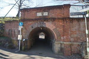 蹴上(けあげ)の三条通から南禅寺に向かう道筋に、煉瓦造の小さな人道トンネルがある。通称は「ねじりまんぽ」と呼ばれている。 ねじりまんぽとは斜アーチ橋であり、上の蹴上インクライン軌道と斜交している。 ◆歴史年表 近代、1887年、9月、ねじりまんぽが着工される。 1888年、6月、竣工した。 ◆ランキン 近代のイギリスの工学者・物理学者・ランキン(William John Macquorn Rankine,1820-1872)。男性。イギリスのエジンバラ生まれ。父はカレドニア鉄道の技術者だった。1836年、エジンバラ大学に入学する。卒業後、技術者・J.マクニールの下で働き、測量、鉄道工事に従事した。1838年から、アイルランドで土木工事に従事する。1842年、独立した。1840年代、熱力学の基礎を打ち立てる。1840年代後半から、数理物理学についても研究した。1851年、ランキン・サイクル(蒸気原動所の最も基本的な蒸気サイクル)を考案した。1853年、ロイヤル・ソサエティ会員になる。1855年、グラスゴー大学で土木工学を講じた。「エネルギー」概念を一般的に把握する見方を提唱した。エネルギー保存の法則の発見などに貢献した。著『応用力学便覧務』『土木工学便覧」など。52歳。 材料力学、弾性学、波動理論、推進器、船の輪郭、流線なども研究した。工学の教科書を著した。1886年に『蘭均(ランキン)氏汽機学』は邦訳され、工部大学校で使用された。弟子・ヘンリー・ダイアー(Henry Dyer,1848-1918)は日本の近代的工学教育の導入に尽力している。 ◆北垣 国道 近代の官僚・北垣 国道(きたがき-くにみち、1836-1916)。男性。号は静屋。父・鳥取藩郷士・北垣三郎左衛門。1847年、碩学家・池田草庵の「青渓書院」で漢学を学ぶ。1863年、攘夷派の平野国臣らによる生野の変に加わり失敗する。1864年、長州藩士として功を遂げた。1866年、長州藩「明倫館」で兵学を学ぶ。戊辰戦争(1868-1869)に参軍し、会津討伐で戦功をあげた。久美浜代官支配地で執政を行う。維新後、1869年、弾正少巡察、大巡察を歴任した。1870年、函館に出張し、樺太を巡回した。1871年、北海道開拓使7等に出仕する。1874年、鳥取県の少参事、1877年、熊本県大書記官、1879年-1881年、第4代・高知県令、1879-1880年、第7代・第8代・徳島県令を兼任した。1881年-1892年、11年にわたり第3代・京都府知事を務めた。京都商工会議所設立を認可し、琵琶湖疏水事業を勧めた。内務次官になる。1890年、琵琶湖疏水工事が完成する。1892年、第4代・北海道庁長官になる。1896年、退任し、拓殖務次官になる。男爵に叙せられた。1899年、貴族院議員、1912年、枢密顧問官を務めた。京都市の自邸で亡くなる。81歳。 墓は金戒光明寺(左京区)にある。 ◆帯山 与兵衛 近代の陶工・9代・帯山 与兵衛(たいざん-よへえ、1856-1922)。男性。旧姓は清水竜三郎。父・3代・清水九兵衛の次男。京都の生まれ。1878年、帯山家の養子になり9代を継ぐ。錦光山(きんこうざん)家、安田家とともに陶器の海外輸出を進めた。1894年、粟田口窯を廃し、八幡に南山焼を興したという。 67歳。 粟田口焼を代表する窯屋として、装飾性の豊かな色絵陶器を製作し、京薩摩と呼ばれた。各国の万国博覧会で受賞した。 ◆ねじりまんぽ 蹴上インクライン軌道の中間付近下に、煉瓦造斜アーチ橋(ねじりまんぽ)がある。南西から北東方向に掘られている。トンネルではなく、実際には、インクラインが上を通っているため橋梁の一種になる。三条通から南禅寺に向かう道路の造成に伴い、近代、1887年9月26日に着工し、1888年6月に竣工した。日本において、鉄道事業者以外が建設した斜アーチ橋の唯一例になる。 橋は、「ねじりまんぽ」と呼ばれている。鉄道敷設下のトンネル状の構造物を意味した。語源については分かっていない。「ねじり」は「捻じり」、「まんぽ」とはトンネルを意味する古い言葉という。 旧国鉄では小規模橋梁(径間1m未満)として、下が道路として使われたものを「架道橋」、「架道拱渠(きょうきょ)」とも呼んだ。拱渠とは、構造力学的にはアーチ(拱)の構造物になる。このため、「斜拱渠」、「斜アーチ斜拱渠」、「煉瓦斜架拱」などとも呼ばれた。 工法は、線路とトンネルが直交ではなく、斜交して掘られている場合に限られている。橋が、上部に敷設された軌道の荷重に耐え、煉瓦の剥離回避のために、内壁煉瓦は斜め(螺旋状)に巻かれた。ただ、実際の煉瓦は、長手積の煉瓦を角度を付けて斜め方向に積んでおり、捻じった煉瓦などは使用していない。斜めに積まれた起拱角は一定であり、線路とトンネルの交差角(斜架角、斜交角)が急なほど、煉瓦も急角度を付けて積まれた。 斜アーチ橋では、内部に発生した軸力(接線方向応力)は、すべて両側の橋台(側壁)部分に伝達されることで強度を確保している。もしも、通常の水平の積み方である粗積造(そせきぞう)にすると、アーチ両端部の坑口付近で軸力が片側にしか伝達されない。このため、強度上の脆弱性が生じてしまう。 内壁のアーチ末端の煉瓦と南北両下部の迫受石は