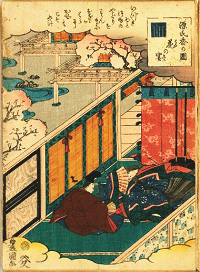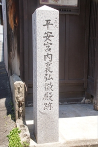 土屋町通出水下ル東入ル北側に、「源氏物語ゆかりの地」の説明板、「この北 平安宮 内裏 弘徽殿跡(へいあんきゅう-だいり-こきでん-あと)」の石標が立つ。 平安時代にこの地に弘徽殿が置かれた。後宮の中でも重要な殿舎だとされ、皇后、中宮、女御などの居所として使われていた。 ◆歴史年表 平安時代、この地に弘徽殿が置かれた。 875年、「天皇暫避仁寿殿。御弘徽殿」(『三代実録』)と記されている。 第56代・清和天皇(在位: 858-876)、第57代・陽成天皇(在位: 876-884)の時、一時期天皇の居所になる。 第59代・宇多天皇(在位: 887-897)の頃、清涼殿が常御所になり、弘徽殿は清涼殿に最も近い建物として後宮の中心的建物になる。 現代、2006年、7月、全京都建設協同組合創立50周年記念として石標が立てられた。 2008年、3月、京都市は「源氏物語ゆかりの地」の説明板を設置している。 2015年、京都市埋蔵文化財研究所は上京区東神明町で発掘調査を行い、登華殿、弘徽殿跡とみられる遺構を発見した。 ◆弘徽殿 弘徽殿(こきでん/うきでん)は、 洪輝殿、弘輝殿、弘宜殿とも書かれ、細殿とも呼ばれた。平安京内裏十七殿の一つ、内裏の後宮(こうきゅう)七殿五舎の一つになる。後宮の南西隅、清涼殿の北にあり、麗景殿と相対しその西にあった。 平安時代前期、875年にその存在が確認できる。(『三代実録』)。当初は北の登華殿とともに女御、更衣の共同居住区の西町に過ぎなかった。第56代・清和天皇(在位: 858-876)、第57代・陽成天皇(在位: 876-884)の時、一時期天皇の居所になる。第59代・宇多天皇(在位: 887-897)の頃、常御所は仁寿殿 (にんじゅでん) から清涼殿に代わった。常寧殿を居所としていた皇后、中宮、女御などは弘徽殿へ移る。弘徽殿は、清涼殿に最も近い建物として後宮の中心的建物になる。 弘徽殿の母屋には、中央を馬道(めどう)が通っていた。このため、南北各3間の2つに分かれていた。弘徽殿の北の西半に収蔵施設の塗籠(ぬりごめ)があった。東は渡廊により常寧殿へ、北は切馬道により登華殿に通じていた。西庇は南北に細いため細殿(ほそどの)とも呼ばれた。 東面、東西2間(庇・孫庇を入れると5間)、南北7間(庇を入れると9間)、4面に庇、東に孫庇付。 ◆源氏物語 『源氏物語』では、弘徽殿は、西側にある飛香舎(ひぎょうしゃ)とともに重要な舞台になる。 弘徽殿に、朱雀院の母・弘徽殿女御が住んだ。女御は光源氏の母・桐壺更衣が、帝の寵愛を受けているのを恨む。女御の執拗な嫌がらせにより死に追う。光源氏にも辛く当たった。 後に弘徽殿女御の妹・朧月夜(おぼろづきよ)が弘徽殿に住む。第八帖「花の宴」では、光源氏が紫宸殿の観桜の宴の夜に、西庇で朧月夜と出逢っている。2人は塗籠(ぬりごめ)で結ばれた。これは源氏の須浜隠棲の原因になった。 ◆発掘調査 2015年に京都市埋蔵文化財研究所は上京区東神明町で発掘調査(145㎡)を行い、登華殿(とうかでん)跡、弘徽殿跡とみられる遺構を発見した。 地中1mから南北方向に3m間隔で平安時代前期の掘立柱建物用の柱穴5基、平安時代中期の渡廊下の礎石とみられる石2つ、平安時代中期・後期の雨落溝とみられる石組が見つかった。 建物は推定東西12m、南北27mあり、平安京造営時の登華殿南西遺構とみられている。その南に弘徽殿があり、2つの建物は渡廊下で結ばれていた。また建物は、柱が抜かれており、後に建て替えられた可能性がある。 登華殿は、平安時代中期、10世紀後半に第66代・一条天皇の皇后・定子(ていし、976-1000)が暮らし、清少納言が仕え『枕草子』にも記した。 ❊原則として年号は西暦を、近代以前の月日は旧暦を使用しています。 ❊参考文献・資料 京都市の説明板「源氏ゆかりの地」、ウェブサイト「京都のいしぶみデータベース-京都市」、ウェブサイト「源氏香の図-ROIS-DS人文学オープンデータ共同利用センター」、ウェブサイト「コトバンク」 ![]() ![]() ![]() ![]() ![]() |