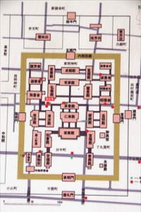 ![]() 「この北 平安宮 内裏 弘徽殿跡」の石標 ![]() 「源氏物語ゆかりの地」の説明板 ![]() 平安宮復元図、黄土色の四角部分が内裏内郭回廊、現在地は左の赤字部分、「源氏物語ゆかりの地」の説明板より ![]() 平安宮復元図、赤茶色の建物群が内裏、現在地は赤字部分、「源氏物語ゆかりの地」の説明板より ![]() 平安時代に使われた土器類、京都市埋蔵文化財研究所、「源氏物語ゆかりの地」の説明板より ![]() 『源氏物語』・「花の宴」 |