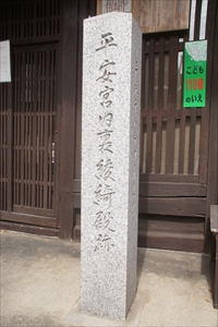 浄福寺通下立売上ル東側に「平安宮 内裏 綾綺殿跡(へいあんきゅう-だいり-りょうきでん-あと)」の石標が立つ。 平安時代にこの地には、綾綺殿があった。天皇・院の一時的な居所になり、舞台は妓女(ぎじょ)の座になった。 ◆歴史年表 平安時代、この地には綾綺殿が置かれていた。 現代、2006年、4月、全京都建設協同組合創立50周年記念として石標が立てられる。 ◆綾綺殿 綾綺殿(りょうきでん)は、平安京内裏十七殿の一つになる。中心的な建物の仁寿(じじゅう)殿の東、宜陽殿の北、庭を挟み温明(うんめい)殿の西にあった。 しばしば天皇の遷御があり、天皇・院の一時的な居所にもなった。正月の内宴(ないえん)では、仁寿殿との間の西庭に舞台が設けられ、妓女(ぎじょ)の座になった。「年中行事絵巻」にも女楽人、6人の妓女が舞う姿が描かれている。相撲節などでも用いられた。温明殿との間の庭では、内待所御神楽(ないしどころみかぐら)が催されていた。また、恒例の御物は綾綺殿にも収蔵したという。(『西宮記』) 西面、東西2間(庇を入れると4間)、南北9間、内南5間は納殿として宮中恒例行事に使用する御物などを納めた。檜皮葺、母屋の4面に庇付き。 ◆内教坊 内裏の東北隅に内教坊(ないきょうぼう)が置かれた。朝廷は妓女(舞妓)に、雅楽寮の教習科目のうち、女楽・踏歌などを教習させた。坊家(ぼうけ)とも呼ばれる。妓女は200人ほどおり、采女(うねめ)、女嬬(にょじゅ)から選ばれ、舞妓と娼妓に分かれていた。 唐の玄宗が蓬萊宮側に置いたのに倣った。奈良時代前期には存在したしたみられ、平安時代には各種節会、内宴(正月21日)などに奉仕した。別当には、大・中納言の中の音楽に通じた者が任じられた。預(あずかり)は女性だった。舞師には舞姫の中から命じられた者がなり、舞を教えた。 舞台は仁寿殿と綾綺殿の間の中庭に設けられた。舞妓は6人で髪に釵子(さいし、かんざし)、唐衣、裳を付けていた。天皇は仁寿殿南庇東端、公卿・近臣は紫宸殿と仁寿殿の渡廊で舞を観覧した。 ❊年号は原則として西暦を、近代以前の月日は旧暦を使用しています。 ❊参考文献・資料 説明板、ウェブサイト「京都のいしぶみデータベース-京都市」、『平安京散策』、ウェブサイト「コトバンク」 ![]() ![]() ![]() ![]() ![]() |