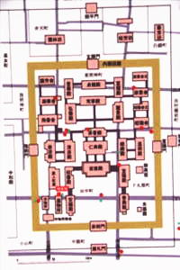 ![]() ![]() 平安宮復元図、黄土色の四角部分は内裏内郭回廊、現在地は左下の赤字部分、「源氏物語ゆかりの地」の説明板より ![]() ![]() ![]() 【参照】雨落溝跡、石列より上が建物跡、1987年、「平安宮-京都市建設局・京都市埋蔵文化財調査センター・京都市埋蔵文化財研究所」説明板(二条駅前)より ![]() 「蔵人町屋址」の石碑 ![]() 「蔵人町屋址」の石碑 ![]() 『源氏物語』・「横笛」、ROIS-DS人文学オープンデータ共同利用センター |