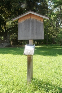 大宮・仙洞御所南西に「鷹司邸跡(たかつかさ-てい-あと) 」の駒札が立てられている。 この付近に、藤原氏北家嫡流、五摂家の一つである鷹司家があった。 ◆歴史年表 江戸時代前期、鷹司邸は仙洞御所北側にあった。 1673年、失火により焼失した。 1708年、宝永の大火により焼失している。 その後、堺町御門の北東に移転した。 1864年、禁門の変の際に、鷹司邸は長州藩士により屋敷に火が放たれる。 近代、1870年、8月、内裏内の公家邸宅地は京都府の管轄になる。 1871年、11月、内裏内の公家町は隣接する町組に分割された。 1877年-1880年、京都御苑内の華族士族などの土地は京都府により買上げられた。 現代、2002年、防火用貯水槽設置に伴う発掘調査が行われた。 ◆鷹司兼平 鎌倉時代前期-中期の公卿・鷹司(藤原)兼平(たかつかさ-かねひら、1228-1294)。別名は照念院関白、法名は覚理。近衛家実の4男、母は藤原忠行/藤原伊忠の娘。1228年、兄・近衛兼経から氏長者を引き継ぐ。1238年、従二位権大納言、右近衛大将になる。1241年、内大臣、1244年、右大臣、1246年、左大臣を歴任した。1248年、従一位、1252年、兄近衛兼経(かねつね)の後を受け、摂政・藤原氏長者になる。1253年、太政大臣を辞した。1254年、関白になり、1261年、辞任した。1275年、再度摂政・氏長者になる。1276年、太政大臣になる。1277年、太政大臣を辞した。1278年、 摂政を辞し、関白になる。1287年、関白を辞した。1290年、出家した。1294年、智恵光院を開山する。日記『称念院関白記(兼平公記)』、有職故実書『照念院殿装束抄』、勅撰和歌集に入集している。67歳。 能書家として知られた。『とはずがたり』の近衛大殿の素材になった。 鷹司家の祖になる。 ◆鷹司信房 室町時代後期-江戸時代前期の公卿・鷹司信房(たかつかさ-のぶふさ、1565-1658)。後法音院太閤。二条晴良(にじょう-はるよし)の3男。1579年、織田信長の口添えで、1546年、11代・鷹司忠冬以後断絶していた鷹司家を継ぎ再興した。1589年、従一位。1606年-1608年、関白になった。93歳。 鷹司家13代になる。 ◆鷹司信尚 安土・桃山時代-江戸時代前期の公卿・鷹司信尚(たかつかさ-のぶひさ、1590-1621)。景皓院前関白。鷹司信房の子。1612年-1645年、関白。1614年、従一位。32歳。 娘・孝子(本理院)は3代将軍・徳川家光の正室になる。弟・信平は、旗本になった。 鷹司家14代になる。 ◆本理院 江戸時代前期の女性・本理院(ほんりいん、1602-1674)。名は孝子。鷹司信房の娘、母は佐々成政の娘?。1623年、江戸城西丸に入る。1625年、3代将軍・徳川家光の正室になった。1763年、贈従一位。73歳。 家光との婚姻は、将軍家御台所を摂家など京都から迎える先例になった。ただ、婚姻生活は不遇だった。家光の父・秀忠の命により、城内の別御殿に住み、中之丸様と称された。 墓は小石川伝通院(東京都)にある。 ◆鷹司信平 江戸時代前期の公卿・旗本・鷹司信平(たかつかさ-のぶひら、1636-1689)。関白・鷹司信房の4男。徳川家光の正室(孝子、本理院)の弟。武家になることを望み、1650年、江戸に下り家光に謁し、御家人になる。1653年、徳川頼宣の 娘・松姫を娶った。1654年、松平の称号を賜り、左兵衛督になり加増された。従四位下少将に叙任される。1674年、加増され上野国碓氷、群馬などを与えられる。54歳。 ◆鷹司輔信 江戸時代前期-中期の公卿・茶人・鷹司輔信(たかつかさ-すけのぶ、1680-1741)。号は有隣軒。関白・鷹司房輔(ふさすけ)の3男/4男。梶井宮慈胤(じいん)法親王に茶道を学ぶ。62歳。 ◆鷹司輔平 江戸時代中期-後期の公卿・鷹司輔平(たかつかさ-すけひら、1739-1813)。幼名は淳宮(あつのみや)。閑院宮直仁(かんいんのみや-なおひと)親王の第3王子。1743年、第115代・桜町天皇の猶子になる。関白・一条兼香(かねか)の養子に入り、鷹司基輝の没後に後嗣のない鷹司家を相続した。1763年、従一位。1787年、関白になる。1789年、第119代・光格天皇の父・典仁(すけひと)親王への、太上天皇尊号宣下を幕府に諮問した。松平定信の反対で実現しなかった。(尊号一件)。1791年、関白を辞職した。75歳。 鷹司家21代になる。春日神社の占いにより選ばれたとの伝承がある。 ◆鷹司政通 江戸時代後期の公卿・鷹司政通(たかつかさ-まさみち、1789-1868)。鷹司政煕(まさひろ)の子。1823年、関白・内覧になる。1842年、太政大臣を兼ねた。1846年、第121代・孝明天皇の摂政になる。1856年、関白を辞し、特旨をもって太閤と称された。1858年、幕府より日米修好通商条約調印の勅許を求められ、当初は開国論を唱えた。鷹司家諸大夫・小林良典らの影響により一橋派、尊攘派に傾き鎖国説に転じた。1858年-1859年、安政の大獄で、子・輔煕(すけひろ)とともに謹慎処分になった。80歳。 正室・徳川清子(?-?)は、水戸7代藩主・徳川治紀(はるとし、1773-1816)の4女・鄰姫だった。清子の弟・斉昭(なりあき、1800-1860)から外国情勢などを聞き取り政通に伝えた。このため、政通は、1853年のペリーの浦賀来航以前に、黒船来航の情報を得ていた。 従一位。朝廷の故