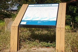 伏見の濠川(ごうかわ)に架橋された伏見であい橋西詰付近に、「角倉了以水利紀功碑(すみのくら-りょうい-すいり-きこう-ひ)」が立てられている。 江戸時代に、高瀬川開削をした角倉了以の功績を顕彰するために立てられてた。 ◆歴史年表 江戸時代、1611年、角倉了以により高瀬川開削が起工される。 1614年、旧8月、了以が亡くなる。秋、子・素庵が引き継ぎ高瀬川は完成した。 近代、1899年、12月、運漕業者有志により碑が建立される。 ◆角倉 了以 室町時代後期-江戸時代前期の海外貿易家・豪商・土木事業家・角倉 了以(すみのくら-りょうい、1554-1614)。男性。与七、諱は光好、法号は了以。京都嵯峨の生まれ。父・土豪(高利貸)・医者・吉田宗桂(そうけい)、母・中村氏の娘の長男。父は勘合貿易により薬も扱った。了以は算数・地理を父に学び、角倉家5代として家業を引き継ぐ。1592年、豊臣秀吉から朱印状を与えられた。1604年以降、徳川氏から朱印状を与えられた。1603年-1613年、弟・宗恂、長男・与一(素庵)らの協力により、安南国(ベトナム)のトンキン(東京)との御朱印船(角倉船、400人乗り、800t)貿易により富を得る。1606年、豊臣秀吉の命により、大堰川開削(丹波-山城)を行う。保津峡に船を渡し、亀岡と京都間の木材輸送を拓く。安南貿易により得た火薬を工事に用いたという。通舟料を得て莫大な利益を得る。1608年、幕府の命により、富士川(駿河岩淵-甲府)疏通を完成させる。同年、天竜川(遠江掛塚-信濃諏訪)開疏は失敗した。1609年以降、貿易は子・与一に譲る。1610年、方広寺大仏殿造営の材木運搬のために、鴨川開削(水路化)を行う。1611年-1614年、高瀬川(京都二条-伏見)開削を行う。二尊院の道空に師事し仏道を極めた。晩年、大悲閣(西京区)に隠棲し、開削川の通船の便益を念じたという。 薬物の輸入に尽力した。土木工事の技術に長けた。琵琶湖疏水(勢多-宇治)計画では、舟行、新田開発の腹案もあった。角倉家は河川通船支配権、倉庫料徴収での特許を得て有力材木商になる。京の三長者(ほかに、後藤四郎兵衛家、茶屋四郎次郎)の一人といわれた。61歳。 墓は二尊院(右京区)にある。 ◆角倉 素庵 安土・桃山時代-江戸時代前期の豪商・文化人・角倉 素庵(すみのくら-そあん、1571-1632)。男性。名は光昌、玄之(はるゆき)、字は子元、通称は与一、別号に貞順・三素庵。父・角倉了以、母・吉田栄可の娘の長男。父の朱印船貿易、河川開発事業を継承した。1588年、藤原惺窩より儒学を学ぶ。後に林羅山を知り、二人を引き合わせる。本阿弥光悦より書を習う。後に「寛永の三筆」の一人とされた。1599年、『史記』の刊行以降、1601年頃まで、光悦の協力を得て嵯峨本を刊行する。1603年から、父・了以の安南国東京(インドシナ半島)との朱印船貿易に関わり、日本国回易大使司を称し、角倉船を海外派遣した。父の大堰川、富士川、天竜川の開削、鴨川水道、高瀬川の運河工事を補佐した。1606年-1609年、甲斐、伊豆鉱山の巡視、1614年-1615年、大坂の陣で船便による物資運搬に貢献した。1615年、幕府より高瀬船、淀川過書船支配を命じられ、山城の代官職に就く。1627年、隠棲した。61歳。 歌、茶の湯、書は角倉流(嵯峨流)を創始した。近世の能書家の五人の一人になる。 墓は化野念仏寺(右京区)、二尊院(右京区)にもある。 ◆高瀬川 高瀬川(たかせがわ)は、江戸時代前期、1611年に方広寺大仏殿の再建の際に、徳川幕府の認可を受け資材運搬のために起工した。輸送には高瀬舟が用いられ高瀬川と呼ばれる。角倉了以が手掛けたことから「角倉川」とも称された。なお、伏見区以南は「東高瀬川」、そのうち、伏見区景勝町で琵琶湖疏水と合流してからは「新高瀬川」という。 了以は、用地の買収費を負担し、運河開削のために買収した土地から得られていた年貢も肩代わりし負担したという。1614年旧8月に、了以は亡くなる。その後、子・素庵に開削事業は引き継がれ、同年秋に完成した。 流路は、二条大橋西畔から鴨川の水を引き入れ、鴨川西岸を南流する。中京区、下京区を経て、南区東九条柳下町で鴨川に一端合流する。その後、東山区福稲(ふくいな)南西部から鴨川東岸を南流し、伏見区市街地西部を流れ、伏見区横大路下三栖東ノ口で宇治川に流入する。 高瀬川が開かれてから、京都、伏見、大坂間の水運による物資輸送に利用された。川は平坦な水路であり、水量も調節できたため容易に運漕することができた。 川幅7m、全長10km。開削費用7万5000両。 ◆濠川 濠川(ほりかわ)は、安土・桃山時代、1594年に豊臣秀吉(1536-1598)による伏見城築城、城下町造成に伴い外堀として開削された。建築資材の運搬に利用されている。このため「ほり」とも呼ばれた。江戸時以降-明治期(1868-1912)まで水運として利用されている。 流路は、伏見区堀詰町から南下し、市内を流れ、葭島金井戸町(よしじま-かないど-ちょう)で宇治川に流入した。 。近代になり琵琶湖疏水に繋がれ、三栖閘門(みすこうもん)から宇治川に流入している。 