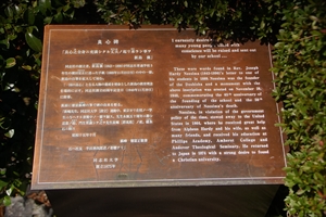 ![]() 良心碑 ![]() 良心碑、「新島襄」の自筆署名 ![]() 良心碑の裏面 ![]() 説明板 ![]() 説明板 |