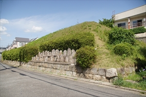 北野天満宮北に「史跡 御土居(しせき-おどい)」の石標が立つ。 安土・桃山時代に、豊臣秀吉が築造させた御土居(お土居)史跡のうち、紙屋川(天神川)の東には、平野御土居(ひらの-おどい)が築造された。現在も土塁が保存されており、国の史跡に指定されている。 ◆歴史年表 安土・桃山時代、1591年、閏1-2月、豊臣秀吉は御土居(お土居)を築造した。 近代、1919年、史蹟名勝天然祈念物保存法により史蹟に指定される。 1930年、7月、この地の御土居は、ほか7ヵ所の御土居とともに国史跡に指定された。 ◆豊臣 秀吉 室町時代後期-安土・桃山時代の武将・豊臣 秀吉(とよとみ-ひでよし、1537-1598)。男性。幼名は日吉丸、初名は木下藤吉郎、小猿と呼ばれた。父・尾張国(愛知県)の百姓、織田信秀の足軽・木下弥右衛門、母・百姓の娘なか(天瑞院)。1551年、家出し、後に今川氏の家臣・松下之綱、1554年、織田信長に仕える。1561年、浅野長勝養女・ねねと結婚し、木下藤吉郎秀吉と名乗った。戦功を重ね、1573年、小谷城主、羽柴姓と筑前守になる。信長の天下統一にともない西国転戦した。1582年、備中高松城の毛利軍と戦いの最中に本能寺の変が起こり、和睦し、軍を返し山崎で明智光秀を討つ。1584年、小牧・長久手で織田信雄、徳川家康の連合軍に敗れる。1585年、紀州根来と雑賀、四国・長宗我部元親を服した。関白に進む。1586年、聚楽第、広寺大仏造営に着手する。太政大臣に昇り豊臣の姓を賜わる。1587年、九州征討し、聚楽第が完成する。旧10月、北野天満宮で北野大茶湯を催した。1588年、第107代・後陽成天皇が聚楽第行幸、検地、刀狩を行う。1590年、小田原の北条氏直らの征討、朝鮮使を聚楽第に引見した。1591年、利休を自刃させる。1592年、文禄の役を始め、甥の養子・秀次に関白職を譲り、太閤と称した。1593年、側室淀殿に秀頼が生まれ、1595年、秀次を謀反人として切腹させ、妻妾子女らも処刑した。1597年-1598年、朝鮮を攻めた慶長の役に敗れた。1598年、旧3月、醍醐寺で「醍醐の花見」を行う。旧8月、伏見城で没した。没後、豊国廟に豊国大明神として祀られた。62歳。 秀吉は京都で「都市改造」を行っている。1585年-1591年、洛中検地・洛中地子免除(1591)、1586年よりの方広寺大仏建設、1586年-1587年、聚楽第・周辺の武家邸宅街建設、1589年、禁裏・公家町の修造整備、1590年、新町割建設(短冊形町割)、1590年、三条大橋などの橋梁・道路建設、1591年、御土居築造、寺院街(寺町・寺之内)建設などになる。 ◆平野御土居・紫野御土居遺構 ◈「平野御土居」(北区平野鳥居前町)は、北野天満宮の北にあり、住宅地に近接して保存されている。戦後に北半分の土塁は消失した。南側は荒廃し、土を盛り直し台形の土塁を修景したという。 現在、遺構は間近に見ることができる。 ◈「紫野御土居」(北区紫野西土居町)も住宅地に隣接している。指定当初は、やや屈曲し、犬走、塁壁なども保存されていたという。規模は土塁の幅25m、高さ4.5m、長さ45mあった。 現代、1964年に宅地開発により大半が破壊され、現在は御土居遺構の東側の一部が残されている。名残の地名「西土居町」に位置している。 ◈近くの寺之内橋(高橋)は紙屋川(天神川)に架けられている。安土・桃山時代、1591年3月に、豊臣秀吉は、この付近より御土居を検分したという。 橋のすぐ北側に「富士垢離場(ふじごりば)が設けられていたという。西国の修験者が行う富士山信仰行事であり、堀の水で身を清めて富士山を遥拝していた。松原橋付近にもあったという。 ◆御土居 室町時代後期、応仁・文明の乱(1467-1477)後、高倉より東、松原以南は、相次ぐ鴨川の氾濫により荒地になった。 安土・桃山時代、1591年に、豊臣秀吉(1536-1598)は京都の再興・改造を手がける。細川幽斉(1534-1610)、前田玄以(1539-1602)などに命じ、洛中の周囲をめぐらせる堤防・惣構施設の「御土居」の築造させた。諸国大名らにより同年1月に着工になり、旧閏1月に2カ月で完成したという。(近衛信尹『三藐院記[さんみゃくいんき]』)。また、2-4カ月/5カ月の突貫工事で完成させたともいう。 御土居は、北は上賀茂・鷹ヶ峰、西は紙屋川(天神川)・東寺の西辺、南は東寺南の九条通、東は鴨川西岸の河原町通まで築かれた。当時存在していた聚楽第、京都御所も土塁内側に取り囲んでいる。規模は、東西3.5km、南北8.5km、総延長は22.5kmにもなった。 御土居は、当初「土居堀」と呼ばれた。ほかに「京廻りノ堤」、「新堤」、「惣曲輪(そうぐるわ)」、「土居」などとも呼ばれ、江戸時代には「御土居」と称されるようになる。 御土居の構造は外側に堀(濠)、内側に台形状の土塁を築いた。工法は「掻揚城(かきあげしろ)」が採られ、掘った堀の土を積み上げて土塁を築き、積石・石垣で地盤を固めた。墓石・地蔵なども「礎石」として使われている。なお、当時の構築物では一般的なことだった。掻揚だけでは、土塁を築く土量が不足したとの見方もある。 土塁規模は一定しておらず、高さ3.6-5.4/6m、基底部幅10-