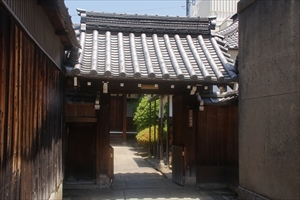 大宮通一条上ル西入ルに長栄寺(ちょうえい-じ)はある。山号は竹谷山という。 浄土宗鎮西派の知恩院末、本尊は阿弥陀如来像を安置する。 四辻地蔵は、洛陽二十四地蔵霊場10番になる。 ◆歴史年表 安土・桃山時代、1587年-1595年、聚楽第の在城の頃、この地には武将・蜂須賀家政の屋敷があったという。(『坊目誌』) 1593年、尼僧・長栄院により長栄寺は創建された。 江戸時代、宝暦年間(1751-1764)前後、この地に、「長栄寺門前町」の地名があった。(「長栄寺敷地図」) 1762年、長栄寺について記されている。(『京町鑑』) 1788年、天明の大火の際に類焼している。 1792年、再建される。 1853年、本堂以外は焼失する。 安政年間(1854-1860)、再建されたという。 ◆長栄院 安土・桃山時代の浄土宗の尼僧・長栄院(ちょうえいいん、?-?)。詳細不明。女性。肥前佐賀藩主の家系に連なる鍋島家の出という。1593年、長栄院を創建したという。 ◆蜂須賀 家政 安土・桃山時代-江戸時代前期の武将・蜂須賀 家政(はちすか-いえまさ、1558-1639)。男性。幼名は小六、通称は彦右衛門、阿波守、号は蓬庵。尾張国(愛知県)海東郡蜂須賀村の生まれ。父・蜂須賀小六正勝。初めは織田信長に仕えた。1570年、父に従い13歳で姉川の戦いに初陣した。1575年より、豊臣秀吉に仕える。1580年、播磨(兵庫県)・長水山城を攻略し功があった。1582年、本能寺の変後、山崎の戦いに加わり、毛利征伐の時に秀吉の馬廻り黄母衣衆(きぼろ-しゅう)になった。1583年、賤ヶ岳の戦、1584年、紀伊根来・雑賀一揆に出陣し、播磨佐用郡を与えられる。1585年、父・正勝の四国征伐の功で、父と共に阿波を与えられ徳島城主になる。1586年、従五位下阿波守に叙任された。1592年-1598年、文禄・慶長の役に参陣し、慶長の役では蔚山(ウルサン)城で浅野幸長を救援した。1600年、関ヶ原の戦いでは西軍(豊臣方)に属し、子・至鎮(よししげ)は東軍(徳川方)に付く。自らは合戦前に阿波を豊臣家に返上し、大坂・久太郎町橋を警固した。病気と称し出陣せず、東軍勝利後に剃髪し、蓬庵と号し高野山に登る。家督を至鎮に譲り、至鎮に阿波が与えられると後見役になった。至鎮の没後、2代・忠英(ただてる)まで徳島藩政を指導した。81歳。 阿波(徳島)藩祖。太閤検地などを進めた。 ◆仏像など ◈本堂に「阿弥陀如来像」を安置する。 ◈地蔵堂の「四辻地蔵」は、役行者(7世紀後半)作とされる。地蔵は、洛陽二十四地蔵霊場10番だった。 ◆文化財 掛軸「長栄院像」がある。 ◆栄町 栄町(さかえ-ちょう)の町名は、安土・桃山時代、豊臣秀吉による聚楽第の在城の頃(1587-1595)、蜂須賀阿波守(家政)邸があったことに因む。江戸時代前期、1637年には、「あはとの丁」と記されていた。(「洛中絵図」) 江戸時代中期、宝暦年間(1751-1764)前後に、「長栄寺門前町」とも記されていた。(「長栄寺敷地図」)。寺号「長栄寺」から「栄町」と呼ばれていたともいう。 江戸時代中期、1762年には、「阿波屋町」か「栄(はへ)町」とも称されたという。(『京町鑑』) ◆蜂須賀家邸跡 長栄寺境内には、豊臣秀吉による聚楽第の在城の頃(1587-1595)に、蜂須賀阿波守(家政)の邸があった。境内の墓地は邸内にあった池水跡という。(『坊目誌』) 邸宅について、「殿下御附人阿波杢之介の屋敷」(「聚楽図」・『坊目誌』)、「阿波殿屋敷」(「官上京師地図」・『坊目誌』)とも記されていた。 江戸時代中期、宝暦年間(1751-1764)には、西園寺家の下屋敷になり、その後、廃されたという。 ◆石敢当 境内鎮守社の祠右脇に、「石敢当(いし-がんとう/せき-かんとう/(せき-かんとう)」と刻んだ自然石が立てられている。字は風化が進んでいる。 石敢當は中国古代からある魔除け・邪気・災害を払う土俗信仰という。中国では「石将軍」とも刻んだ。 石敢當の呼称については、中国語音の"shih-kan-tang"から転訛したともいう。中国の武将名とも、五代の晋の力士名に由来するともいう。中国では風水思想の影響を受けて、悪鬼・悪霊が直進しかできないため、丁字路・三叉路などの突き当たりに立てたという。 石敢當は、沖縄に伝わり湯桶読みして「いし-がんとう」と呼ばれた。沖縄にはそれ以前より自然石を魔除けとする道祖・郷関信仰があり石敢當と習合する。このため、沖縄では日本で最も数が多く残る。 沖縄では、家・人に災厄をもたらすとされる悪鬼・悪霊・厄神などを総称し「ヤナムン(邪悪な物)」と呼び、反対の魔除けを「ムンヌキムン(邪悪な物を抜く物)」と呼んだ。また、「マジムン(魔物)」とも称された。悪鬼・悪霊は徘徊し直進する性質を持つ。丁字路・三叉路などの突き当たりでは、 壁を突き抜け向かいの家に入り込み、人に憑き悪事を起こす。このため、人々は魔除として低い位置に「石敢當」と刻んだ石碑を立てるか、「石敢當」の文字を刻んだ石板を壁に貼り付けた。これらの石敢當があると、悪鬼・悪霊は恐れて砕け散るとされた。 石敢当は鹿児島にも伝わり「せっかんとう」と呼ばれた。その後、九州・本州にも
