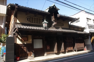 ![]() ![]() ![]() 大看板、ガス燈 ![]() 大看板 ![]() 大看板の彫り物、一文字瓦 ![]() 虫籠(むしこ)窓 ![]() ガス燈 ![]() 屋根の起(むく)り ![]() 出格子窓 ![]() 看板 ![]() ![]() 家紋「秦」 ![]() ガラス戸 ![]() ![]() 【参照】「油小路通り」の通名板 |