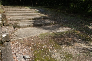 ![]() 清滝川駅跡、石垣 ![]() 清滝川駅跡、石段 ![]() 清滝川駅跡、プラットホーム跡 ![]() 清滝川駅跡、架線柱の土台跡
