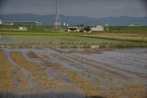 久御山町の東一口(ひがし-いもあらい)の水田地帯に、大池神社(おおいけ-じんじゃ)がある。西には宇治川の流路がある。神社は東一口自治会が管理している。 祭神は巨椋池干拓事業の犠牲になった生き物を祀っている。無格社。 ◆歴史年表 近代、1936年、大池水産組合により創建された。 現代、1975年、巨椋池土地改良区有志により現在の社殿が再建された。 ◆創建の由来 大池神社は、近代、1936年に大池水産組合により創祀された。巨椋池に棲息した魚介類・様々な生物の霊魂を祀り、水田耕作者の安全・繁栄を祈念している。 ◆建築 現在の本殿は、現代、1975年に巨椋池土地改良区有志により再建された。 春日造、鉄筋コンクリート製。 ◆文化財 巨椋池での漁業の歴史に関する文書を多数所蔵している。 ◆碑 「巨椋池」の碑が立つ。巨椋池土地改良区理事長・池本楢三郎による。 巨椋池干拓後の1953年9月25日に、台風13号により淀川が決壊し、濁水が干拓田にも流入した。このため、接続地とともに一帯も水没し、かつての巨椋池が再現したかと思わせるほどだったという。 増水時の水位がこの碑の頂点になったという。 ◆一口 付近の地名「一口(いもあらい)」は、久御山町の旧巨椋池西岸の大堤防周辺の地名であり、東一口、西一口の2つの集落に分かれている。一口について口碑には、この地は三方が沼であり、入口が一方しか開いておらず一口になったともいう。 中世(鎌倉時代-室町時代)には「芋洗(いもあらい)」と記していた。芋洗の初見は、鎌倉時代前期、1221年の『吾妻鏡』になる。近世(安土・桃山時代-江戸時代)にはすでに「一口」と記されている。この間の用字の変化については不明。 東一口地区は、旧巨椋池西岸の大堤防片側に盛土して造られた。東西に細長い集落(全長1300m、最大幅100m、最小幅27mほど)を形成していた。一戸一棟であり古くは草葺平屋の母屋が、狭い庭を持つ形で建ち並んでいた。 一口は、古くより淡水漁業が盛んな土地柄だった。住民は禁裏供御人(きんり-くごにん、室町時代に生まれた朝廷を本所とし、主に食料品を扱う座商)の流れを汲むとされた。網代(あじろ、漁場)の支配者であり、漁協特権は朝廷か石清水八幡宮(八幡市)より与えられていたという。また、飛鳥時代の第31代・用明天皇(?-587)作の短冊を咥えた鯉を、魚の市の漁師が捕まえた賞として、淀川水域一帯の漁業権を得ていたとの伝承もある。 平安時代の鳥羽法皇(第71代、1103-1156)もこの地に、漁業権を許すという綸旨を与えたという。範囲は、東は津軽、西は櫓櫂(ろかい、和船に備わっている「ろ」と「かい」)の及ぶ範囲というものだった。このため、漁師は巨椋池・淀川・その支流とともに、洪水時には櫓・櫂の及ぶ範囲で、公私の土地・田畑の区別なくその上での漁業も許されていた。 安土・桃山時代、1601年には徳川家康(1542-1616)より巨椋池漁業に対する鑑札が出されている。 ◆巨椋池 かつて、一帯には巨大な湖沼の巨椋池(おぐらいけ/おぐらがいけ/おぐらのいけ)が存在していた。洪積世(170万年前-1万年前)に、京都盆地など瀬戸内低地帯に広がっていた水面の一部が取り残されたと考えられている。現在の久御山町北東部、京都市伏見区南部(向島)から宇治市西部(槙島町・小倉町)一帯にあった。規模は東西4km、南北3km、周囲16km、水深 1.7/1.5m、湖面標高11.4m、面積は794haあった。 京都盆地の最低地のため、北から桂川・南から木津川・東から宇治川という三つの大河川が巨椋池に流れ込み、淀川を経て大阪湾へ注いでいた。このため、巨椋池は流入河川により土砂の埋積を受け続け、度々洪水が頻発した。 広大な沼地の巨椋池は『万葉集』に「巨椋の入江」とある。古代-中世に池の西端部には与等(淀)津、東岸に宇治津・岡屋おかのや津、北方に前滝津などが開かれ、水上交通の要衝地になっていた。池畔は早くから耕作地化され、条里遺構が旧湖岸線に及んでいた。少雨でも農地は冠水し、農業には適していなかった。巨椋池での淡水魚漁業は盛んであり、コイ・フナ・ナマズ・ウナギなど40種類の魚類、タニシ・シジミなどの貝漁も行われていた。 安土桃山時代の1594年に、豊臣秀吉(1536-1598)は伏見桃山城の築城を始めた。伏見城下を洪水から守るために、宇治川を巨椋池と切り離す付け替え大事業を行う。宇治川は槙島堤により北へ迂回させ、伏見城下の南に現在の観月橋が架橋され、太閤堤の上に京都-奈良を結ぶ大和街道が造成された。ただ、秀吉は、大坂を洪水被害から守るために、巨椋池を「遊水地」とし残し、あえて宇治川と巨椋池とを完全に分離しなかった。 江戸時代にも、巨椋池は淀付近で三河川の合流点と繋がったままであり、増水時には必ず甚大な被害が出た。江戸時代初期の木津川付替え工事も、根本的な解決にはならなかった。幕府は商人・土木事業家・川村瑞賢(1618-1699)を派遣し、淀川の浚渫・付替えなどの治水工事は行っている。 近代に入り、1868年に伏見と大阪の間に蒸気船が就航し、淀川
