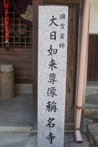 ![]() ![]() ![]() 「國寶薬師 大日如来尊像稱名寺」の石標 ![]() 地蔵堂 ![]() 地蔵尊 ![]() 地蔵尊 ![]() ![]() 本堂 ![]() 本堂、「護念山」の山号扁額 ![]() 本堂 ![]() 宝篋印塔 ![]() ![]() ![]() 松 |